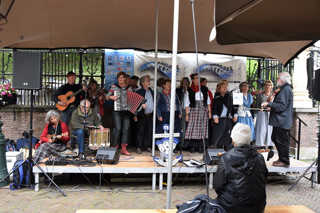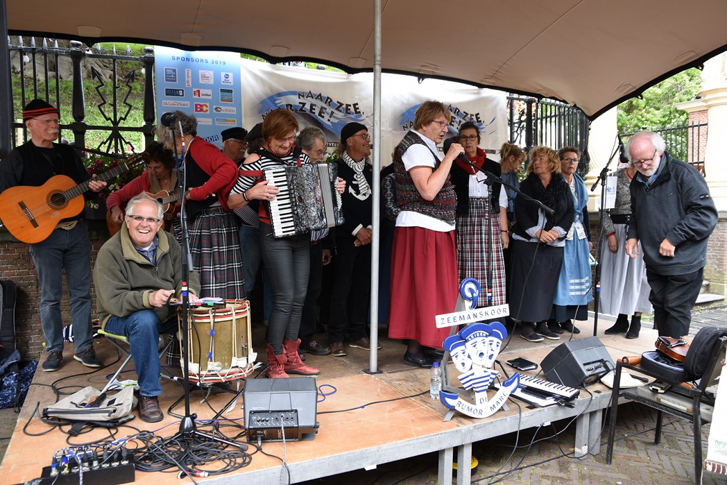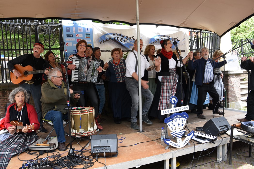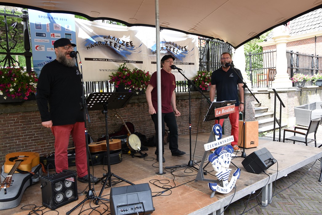De gezichten van de leden van Rumor di Mare, die voor de 7e keer het festival Naar Zee Naar Zee organiseerden, stonden zaterdagmorgen op onweer. Het stormde en de regen viel met bakken uit de lucht, geen weer om de zee op te gaan en al helemaal niet om een openluchtfestival te bezoeken. Gelukkig werd het om 12.00 uur droog zodat wethouder Yvonne van Delft het festival op het podium bij het Burchtplein kon openen. Vanwege de storm werden de optredens die op het buitenpodium bij de Hooglandsekerk zouden plaatsvinden verplaatst naar de Tuinzaal van Grandcafé de Burcht.