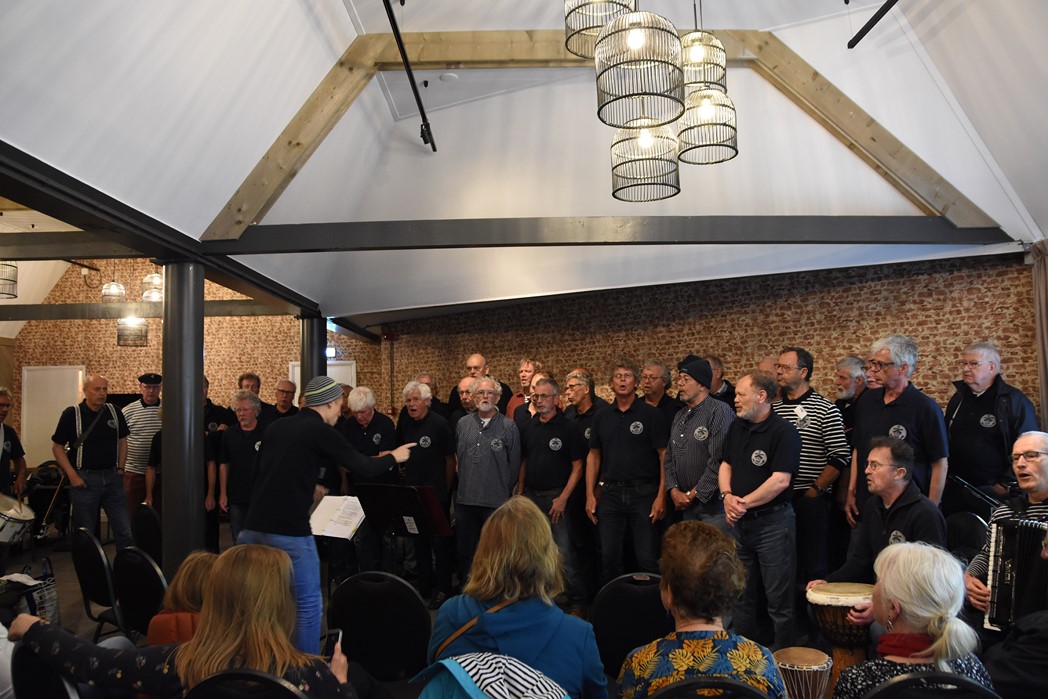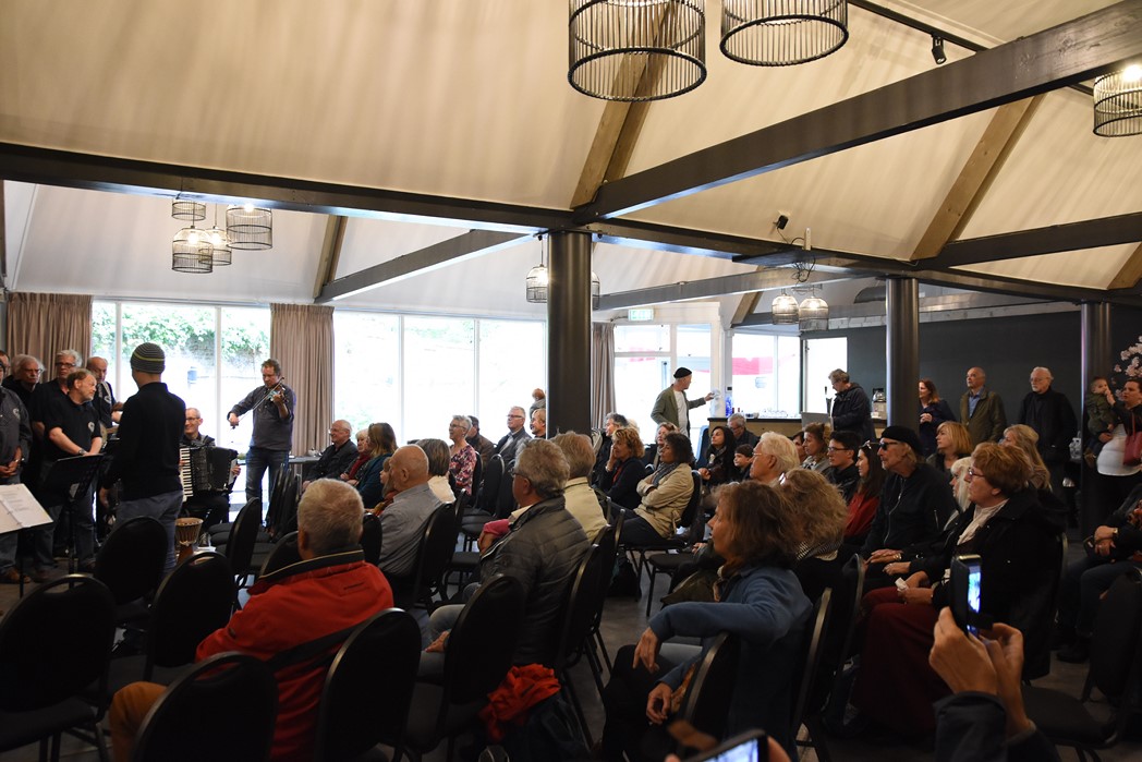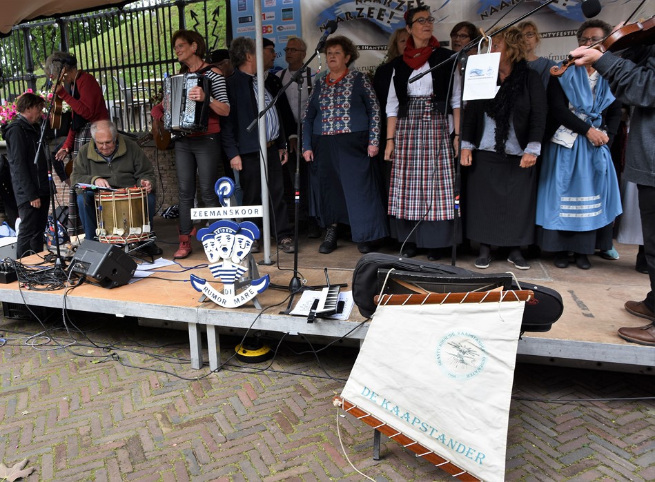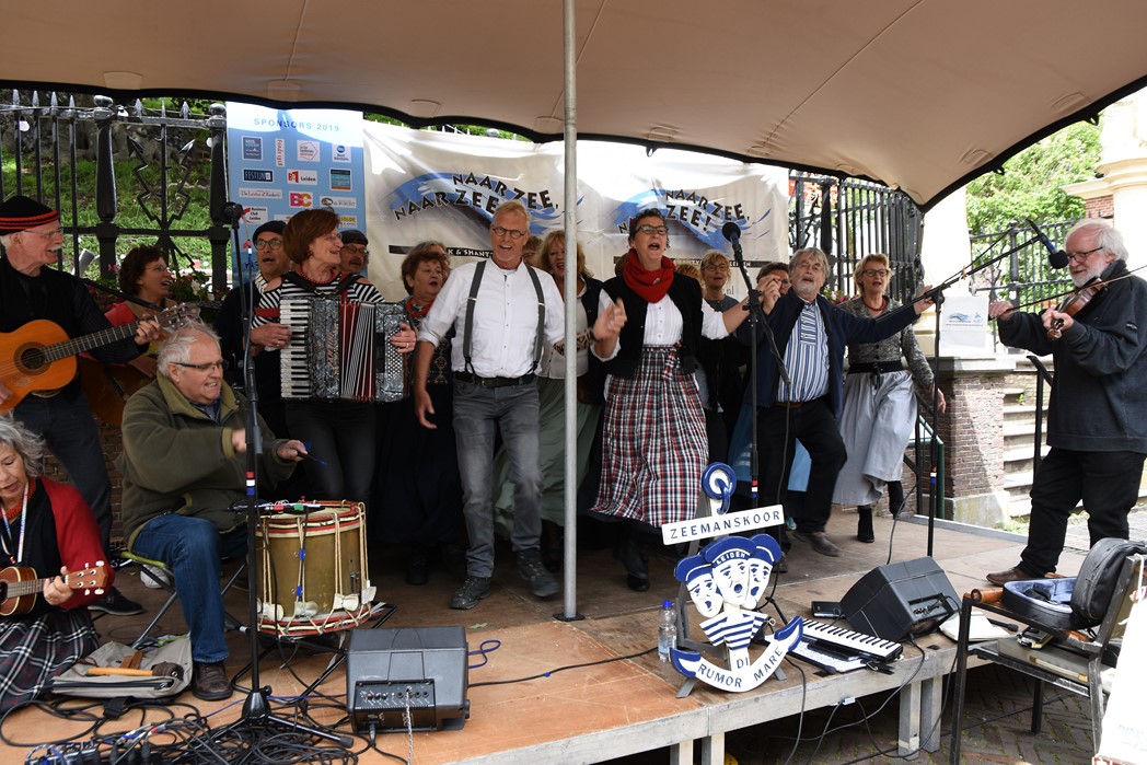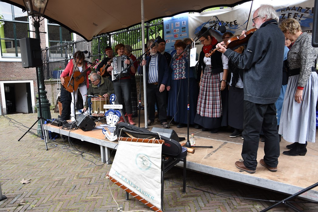 De gezichten van de leden van Rumor di Mare, die voor de 7e keer het festival Naar Zee Naar Zee organiseerden, stonden zaterdagmorgen op onweer. Het stormde en de regen viel met bakken uit de lucht, geen weer om de zee op te gaan en al helemaal niet om een openluchtfestival te bezoeken. Gelukkig werd het om 12.00 uur droog zodat wethouder Yvonne van Delft het festival op het podium bij het Burchtplein kon openen. Vanwege de storm werden de optredens die op het buitenpodium bij de Hooglandsekerk zouden plaatsvinden verplaatst naar de Tuinzaal van Grandcafé de Burcht.