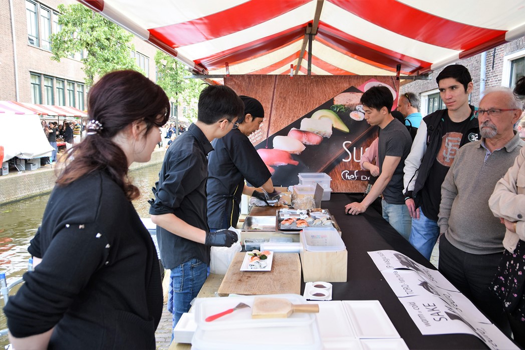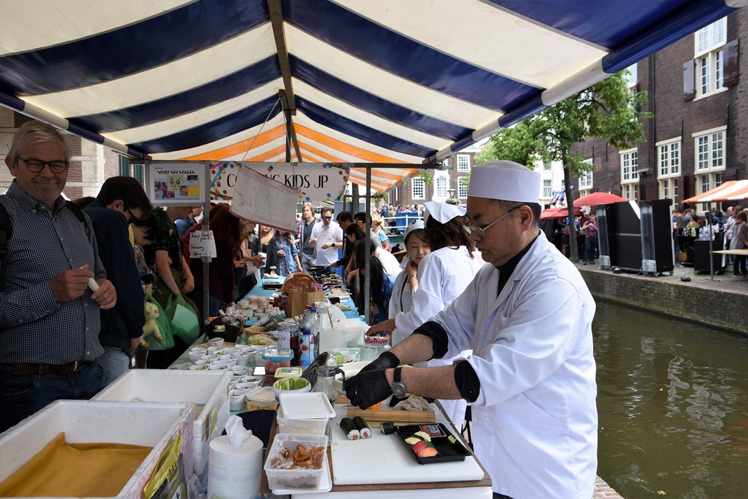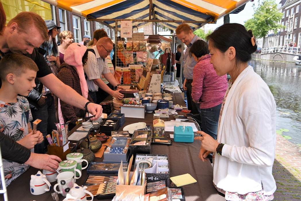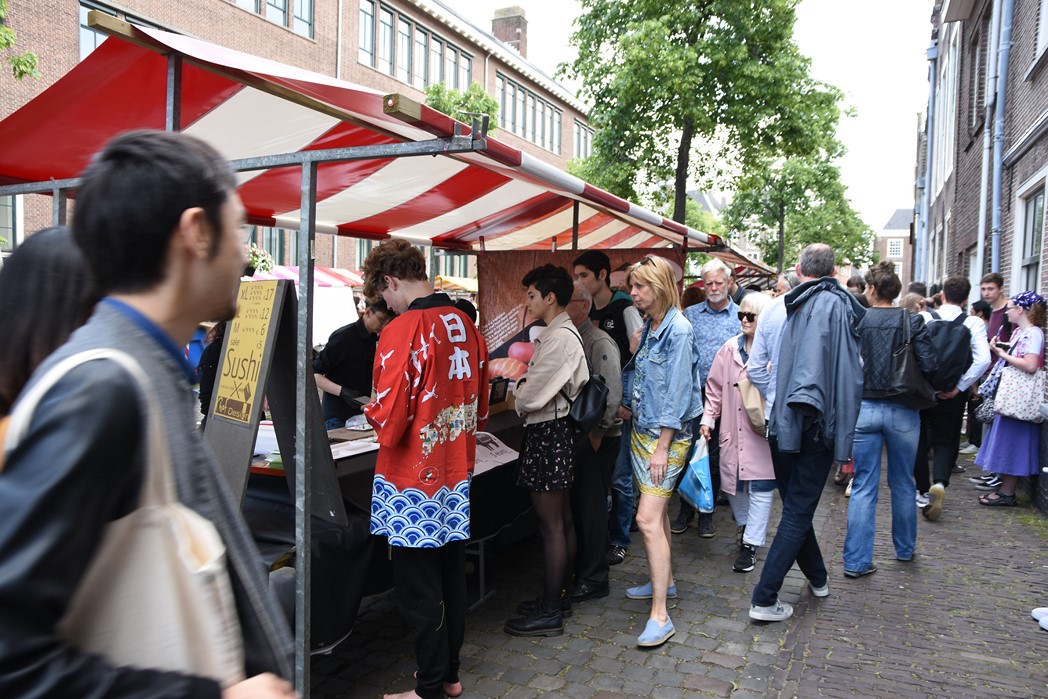 Bijna 10.000 bezoekers genoten zondag van de 12e editie van de Japanmarkt op het Rapenburg en de Groenhazengracht. Om 12.00 uur werd de markt geopend door Yoshiko Kijima, de plaatsvervangende ambassadeur van de ambassade van Japan in Nederland, Yvonne van Delft, wethouder Werk, Inkomen, Economie & Cultuur van de gemeente Leiden en Kris Schiermeier, directeur Japanmuseum SieboldHuis. De duizenden bezoekers schuifelden langs de 80 kramen die aan weerskanten van het Rapenburg stonden opgesteld. In Rijksmuseum Oudheden werden de hele dag demonstraties gegeven van diverse Japanse vechtsporten. De keuze die enkele jaren geleden gemaakt is om op de Groenhazengracht een speciaal foodmarkt te maken is een schot in de roos. Er was op de foodmarkt bijna geen doorkomen aan en er stonden lange rijen bij de tientallen eettentjes.