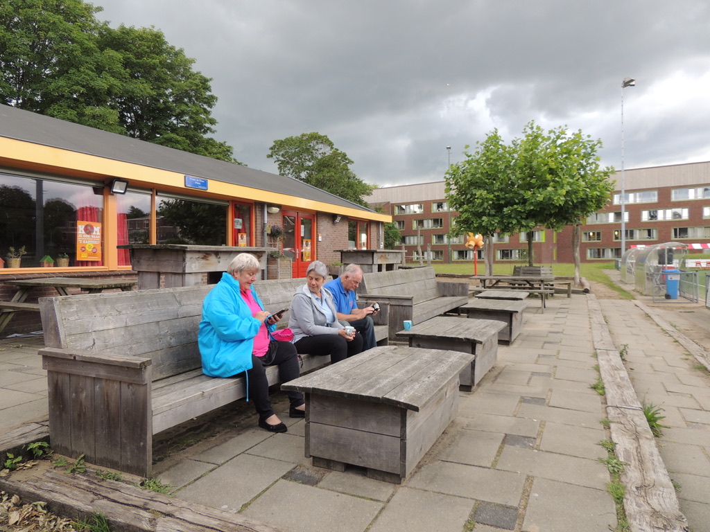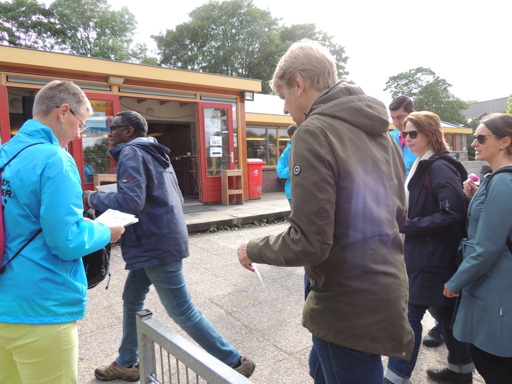 De deelnemers aan de derde etappe die door polderpark Cronesteijn zal lopen, hebben rekening gehouden met een eventuele regenbui en hebben extra kleding meegenomen in rugzakken of hopen snel genoeg te wandelen om de buien voor te blijven.