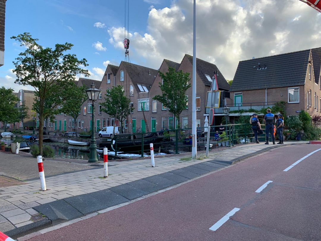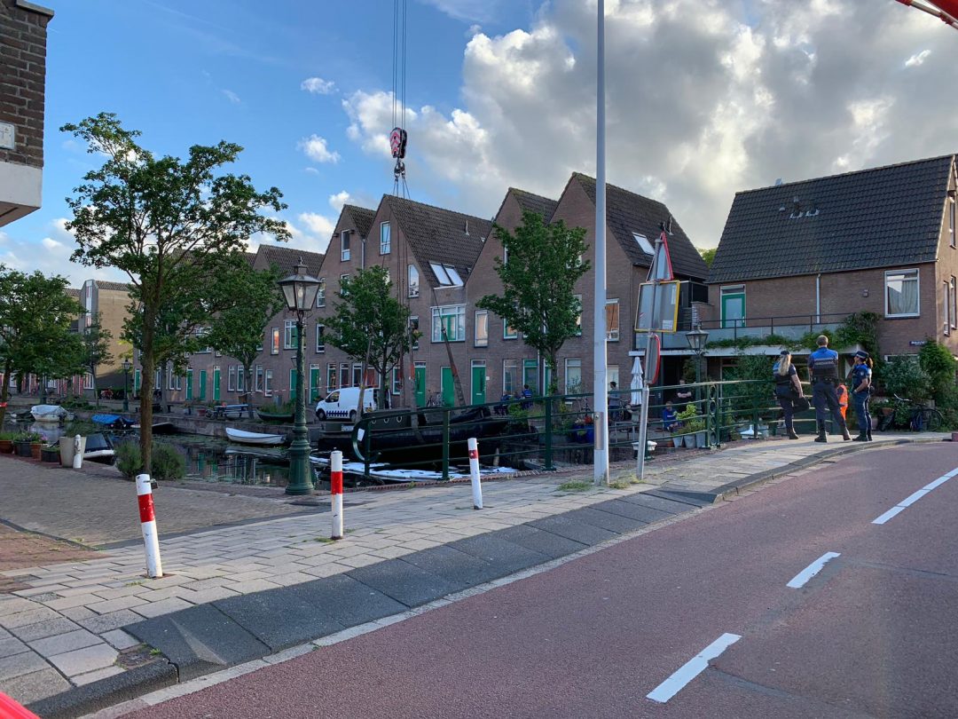 In de Oranjegracht in Leiden is zaterdag een bootje gezonken. Door de hevige regenval zakte het vaartuig naar de bodem. Daarbij lekte het scheepje ook olie. Gisteren werd het vaartuig met behulp van een kraan naar boven getakeld en leeggepompt. Toen bleek dat er geen sprake was van een lek en dus kon de boot in het water blijven liggen.