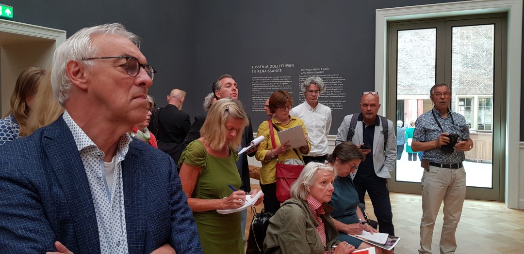 Vandaag werd er alvast een rondleiding gegeven voor de pers. Daarbij waren niet alleen de medewerkers van het museum aanwezig, maar ook renovatie-architect Julian Harrap uit Londen en de drie architecten Happel, Cornelisse en Verhoeven uit Rotterdam die tekenden voor de uitbreiding van het museum. Ook de ontwerpers van het nieuwe Leidse Laken waren aanwezig.
