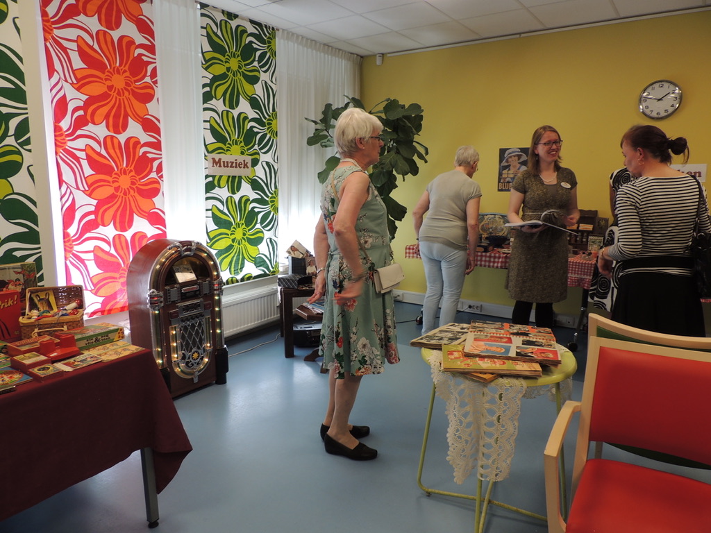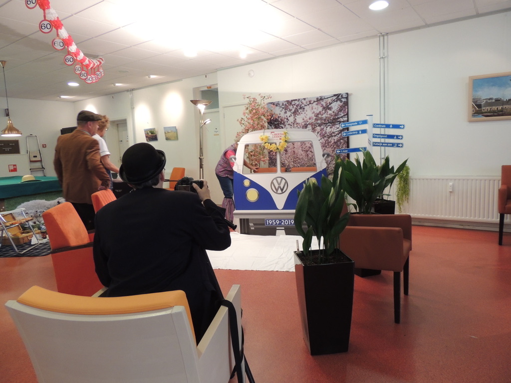 Op dinsdagmiddag rook het in de hal van de Parelvissers aan het Bizetpad naar versgebakken wafels. Mensen konden op de foto in een vintage busje, oude films bekijken of rondsnuffelen op een markt met allemaal spullen uit de jaren zestig. Marianne Wiersma, medewerker welzijn bij Libertas Leiden, maakte er met medewerkers en vrijwilligers een mooi feestje van.