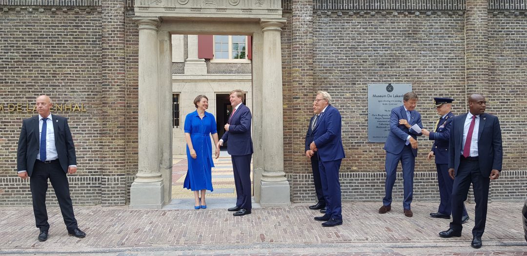 Na een welkomstwoord door achtereenvolgens museumdirecteur Meta Knol en burgemeester Henri Lenferink werd de sleutel op zijn plek gezet en gingen de confetti kanonnen af. Daarna kreeg de Koning een rondleiding door het museum. Hij bekeek daarbij onder meer het Laatste Oordeel van Lucas van Leyden, het Nieuw Leids Laken en het educatie-atelier van De Lakenhal. De bijeenkomst werd muzikaal ondersteund door K&G.