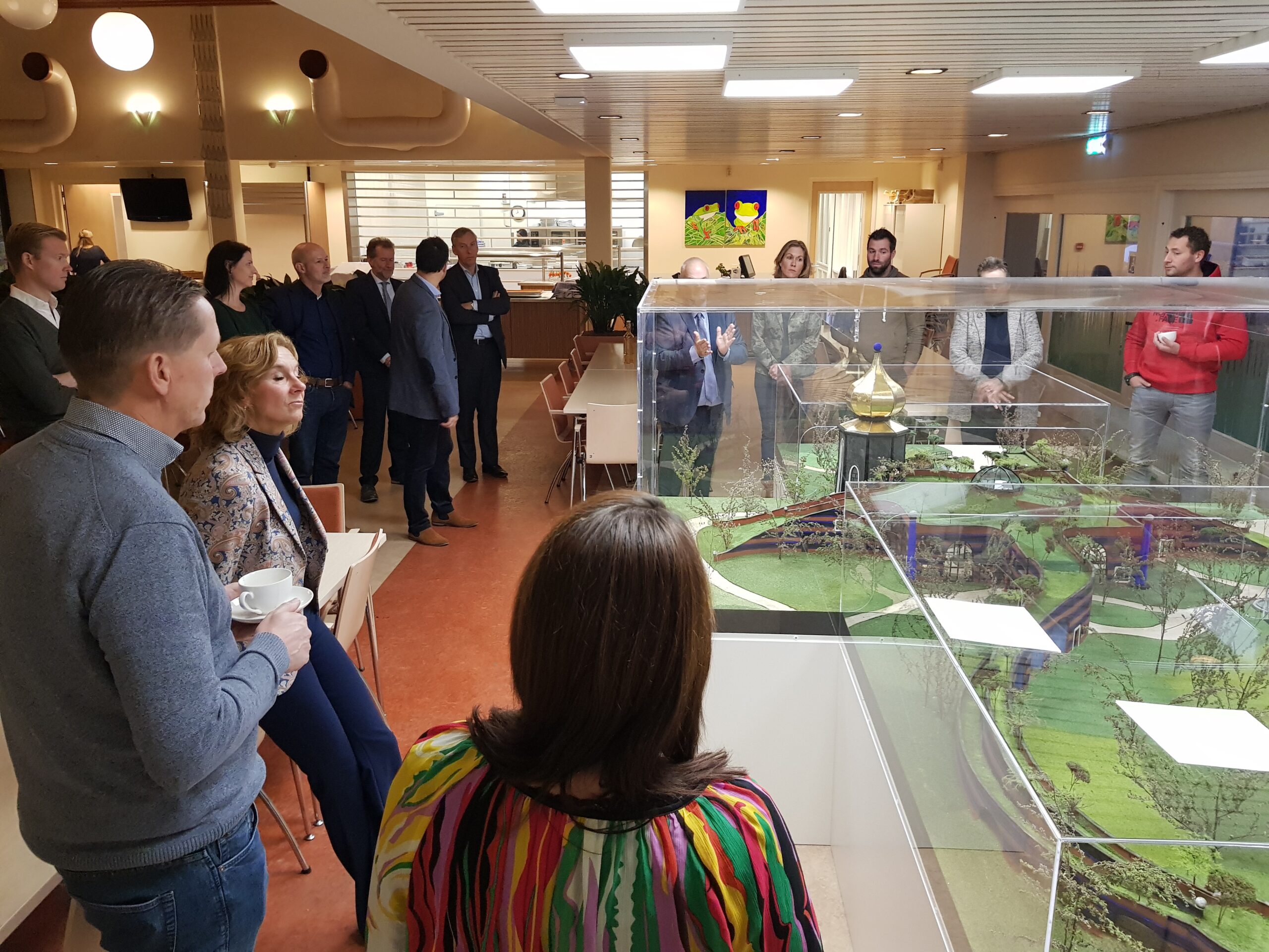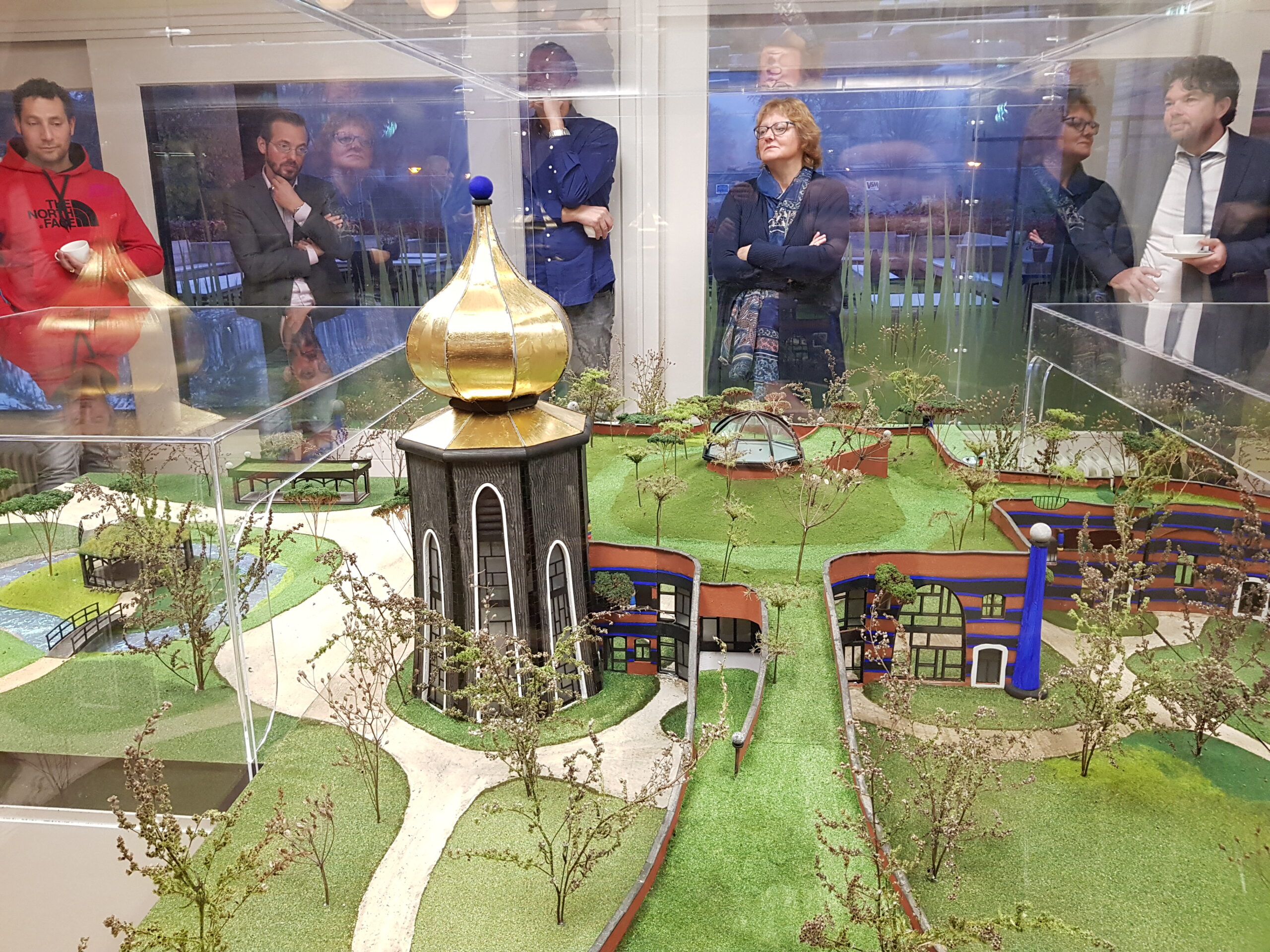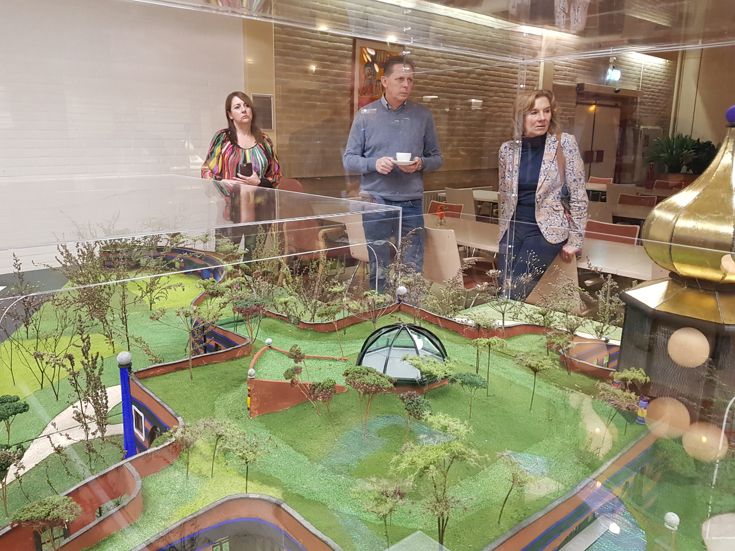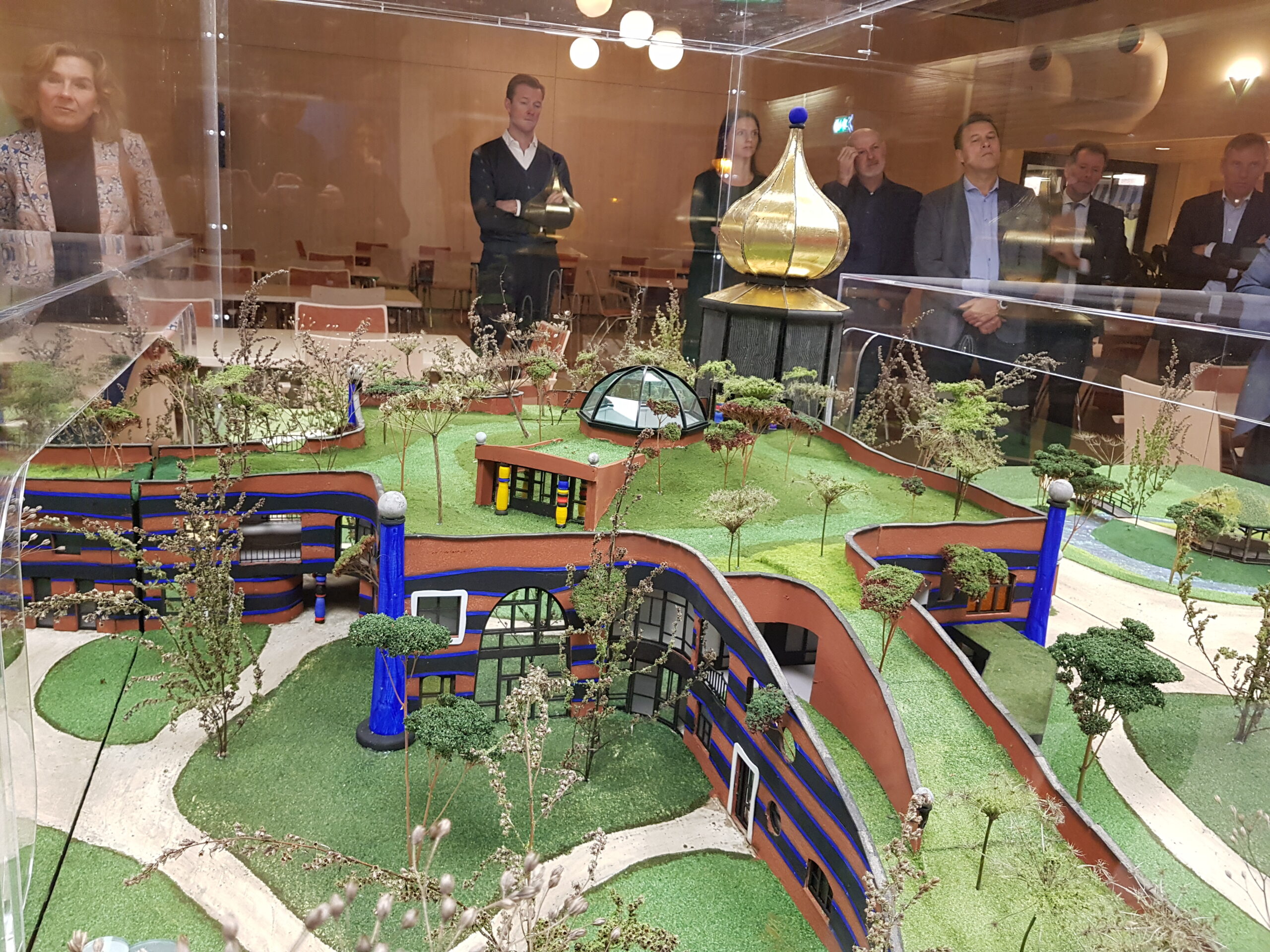 Op Swetterhage staat een maquette van het Hundertwassergebouw zoals de Gemiva-SVG Groep het wil realiseren.