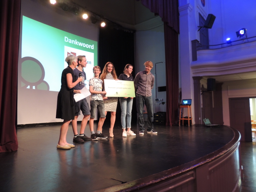 Winstgevend Waareiland is bedacht door een groep leerlingen van het Stedelijk Gymnasium. Zij hebben volgens de jury het beste plan. Goed uitgewerkt, ook kleinere, meer haalbare stappen benoemd. Met waterbesparende douchekoppen, driedubbele beglazing en ieder huishouden een eigen laadpaal die via zonnepanelen wordt gevoed. Al willen zij ook tamelijk rigoureus af van bootjes in de wijk om plaats te maken voor drijvende tuinen. Bente Wassenaar, Daan van den Brom, Martijn Weeder en Merle Combé mogen binnenkort hun plannen komen toelichten bij wethouder Fleur Spijker die de eerste prijs overhandigde: een rondvaart door de Leidse grachten.