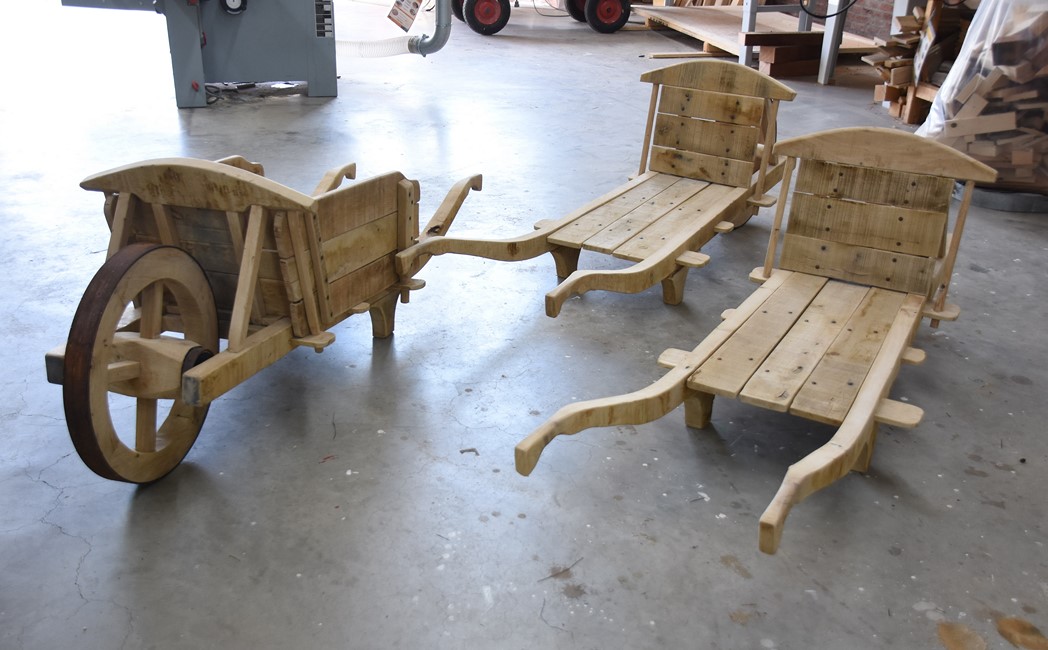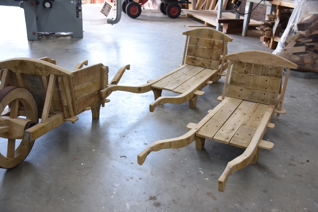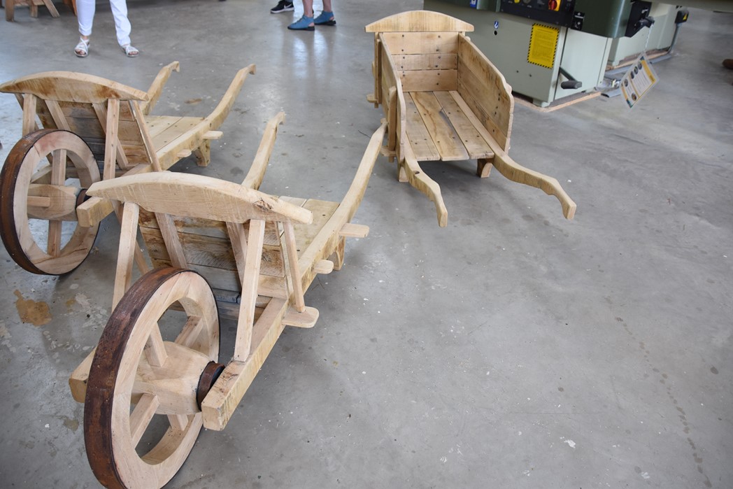 De kruiwagens zijn volledig uit eikenhout gemaakt. Alleen de nagels en banden zijn van smeedijzer. Dat eikenhout komt uit Voorschoten en moest eerst een tijd liggen en drogen voordat het verwerkt kon worden. Daarom duurde de bouw van de kruiwagens bijna het hele schooljaar. Van intekenen tot uitvoering hebben de studenten alles zelf gedaan.