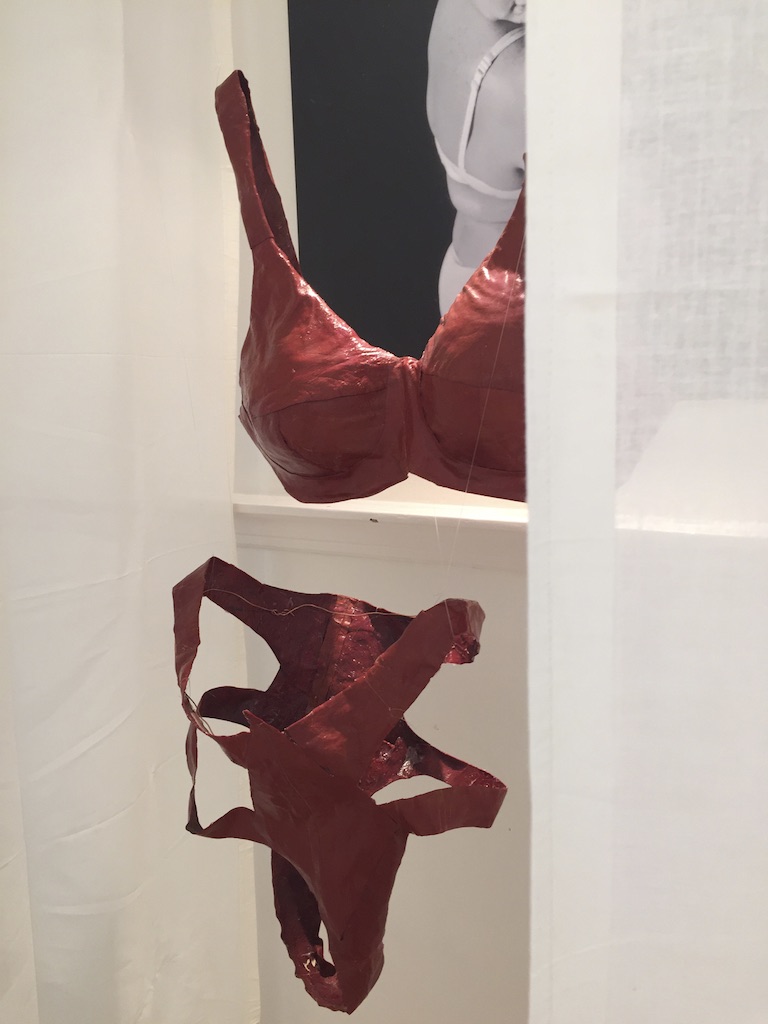 In de zaal boven hangt werk uit de beginperiode van Theolieke Smit en komt de titel ‘Kijk mij nou’ het meest direct terug in de tentoongestelde werken. De onbarmhartigheid van de blik op het vrouwenlichaam. Misschien wel het meest treffend gevat in de besloten omgeving van een paskamer. “Het blijft actueel. Hoe negatief we kijken naar vrouwen die volgens de norm te dik zijn. Daar was ik zeventien jaar geleden al mee bezig en nu speelt het nog steeds.”