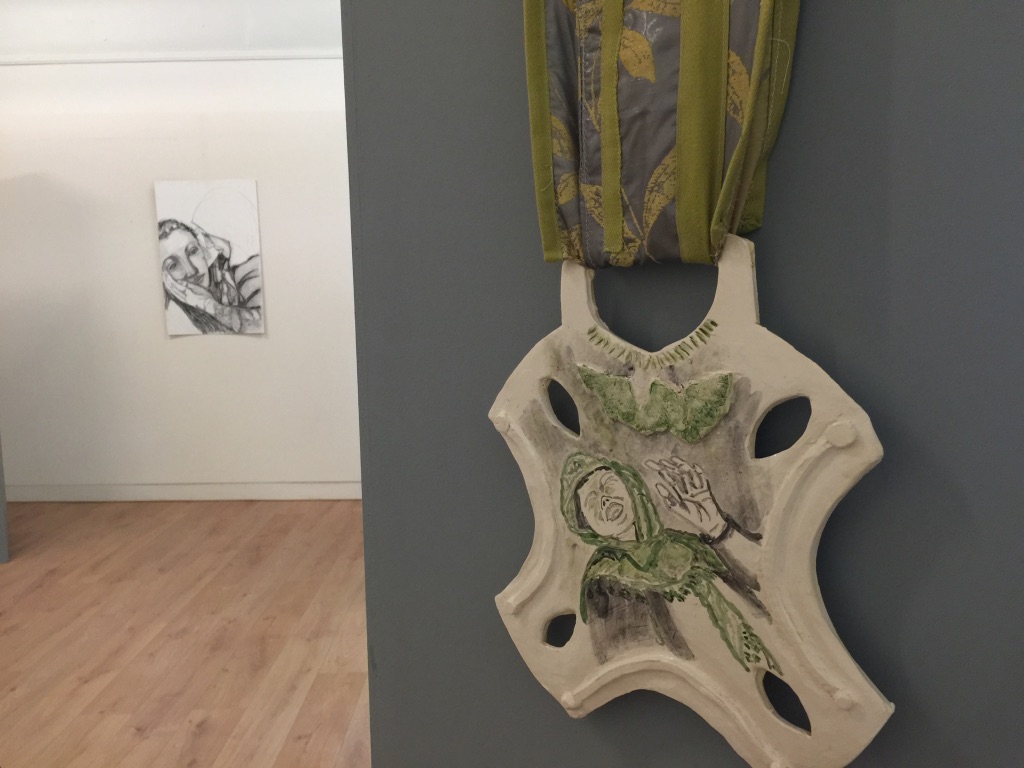 In de eerste zaal rechts als je binnenkomt in het oude schoolgebouw in de schaduw van de imposante Pieterskerk brengt Theolieke een eerbetoon aan meestal anonieme vrouwen. Aardewerken medailles voor de onbekende heldin, een tentoonstelling die ze twee jaar geleden voor het eerst exposeerde tijdens de kunstroute in de Lokhorstkerk. “Aardewerk is kwetsbaar, maar er worden ook al heel lang potten en pannen van gemaakt en het past ook in de Nederlandse cultuur. Dat komt allemaal samen.”