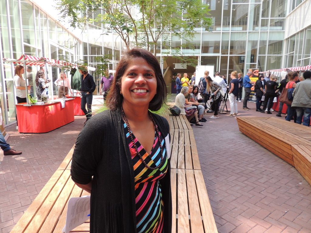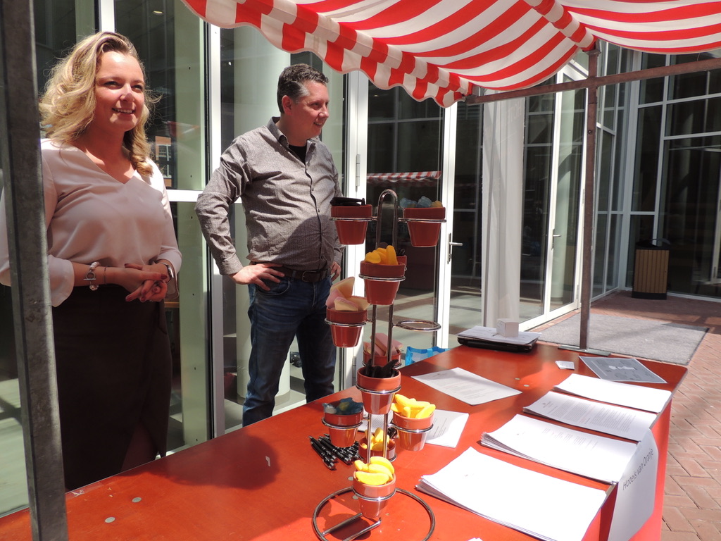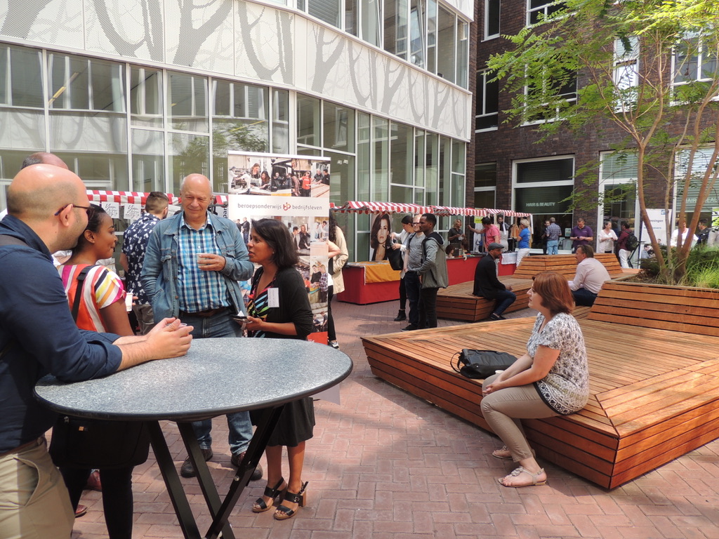 Organisator Mina Dewkali van ‘Leren en Werken’ is zeer tevreden over de markt op de binnenplaats van de school waar vijftien bedrijven zich hebben gepositioneerd. Een kok staat er sushi te draaien, er worden non-alcoholische cocktails geschonken, folders en pennen uitgedeeld. “We missen alleen de zorg-branch. Ik heb wel wat organisaties benaderd maar blijkbaar zijn ze al voorzien.”