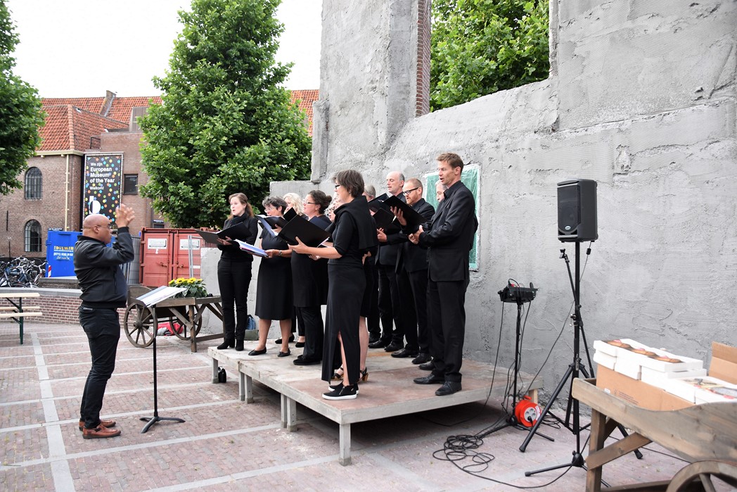Op de Amerikaanse onafhankelijkheidsdag 4 juli zong het Waalse Kerk Consort delen uit de mis Goudimel op het Vrouwenkerkplein waar nog een klein restant van de kerk is terug te vinden, vertelde schrijver Jeroen Windmeijer het ware verhaal van de pelgrims en presenteerde Josine van Heijnen haar nieuwe gin. De gin Rev. Robinson is zacht en kruidig van smaak. De pelgrims waren behoorlijk recht door zee. De vraag blijft of de strenge puriteinen blij zouden zijn met een gin vernoemd naar hun dominee. De pelgrims kozen er uiteindelijk in 1620 voor naar Amerika te gaan omdat Leiden te liberaal voor hen was en ze vreesden dat hun kinderen teveel zouden inburgeren en het ware geloof verliezen.