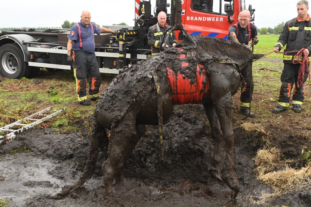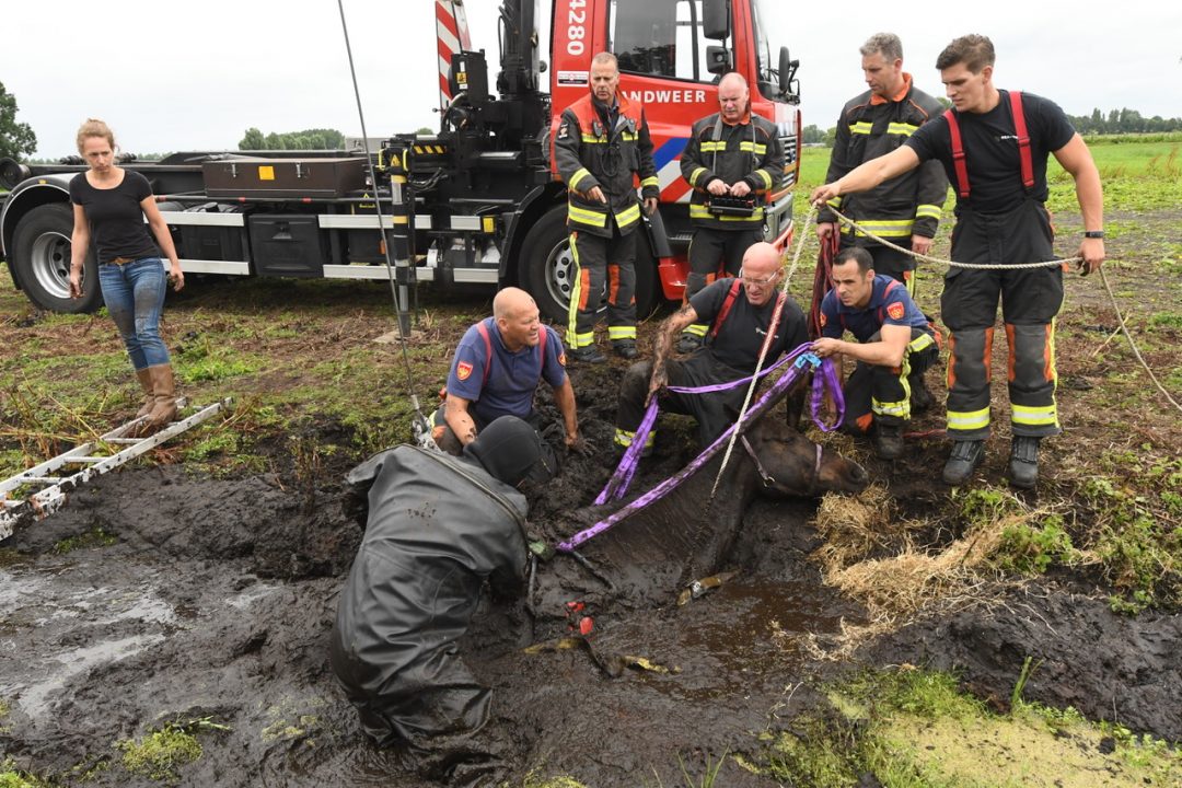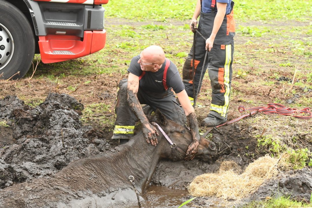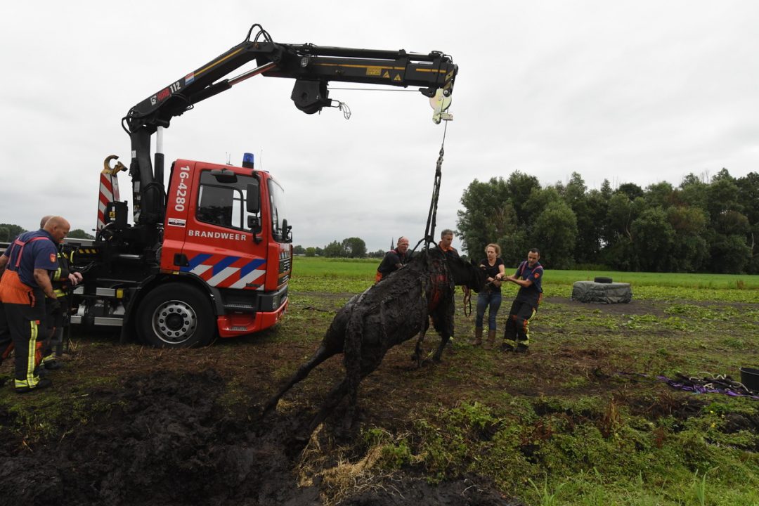 Met de nodige moeite lukte het de brandweer om het uitgeputte paard met behulp van een takel uit de modder te trekken. Een dierenarts werd vervolgens ook opgeroepen om het paard te onderzoeken. Na het modderige klusje, werden de betrokken brandweerlieden schoongespoten met een brandslang.