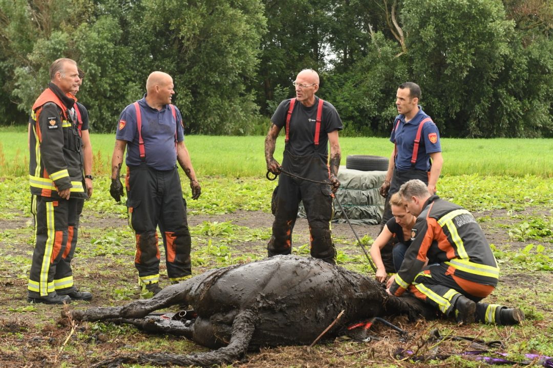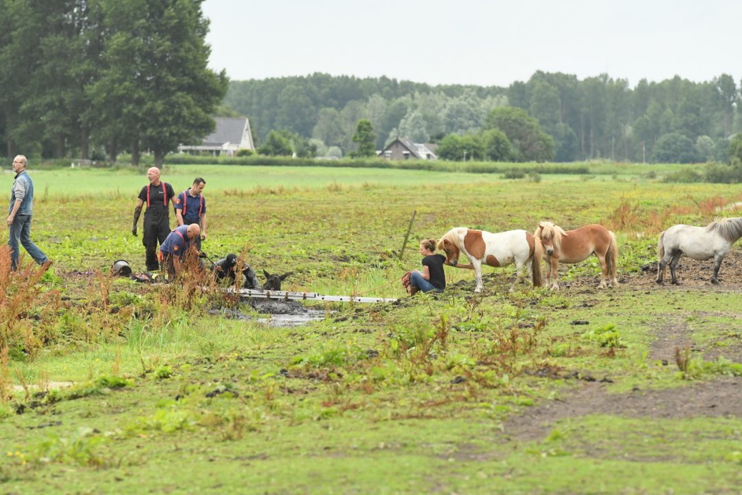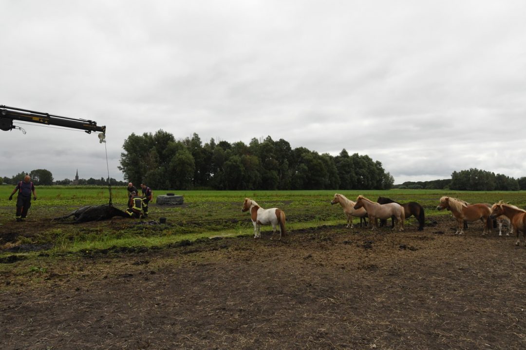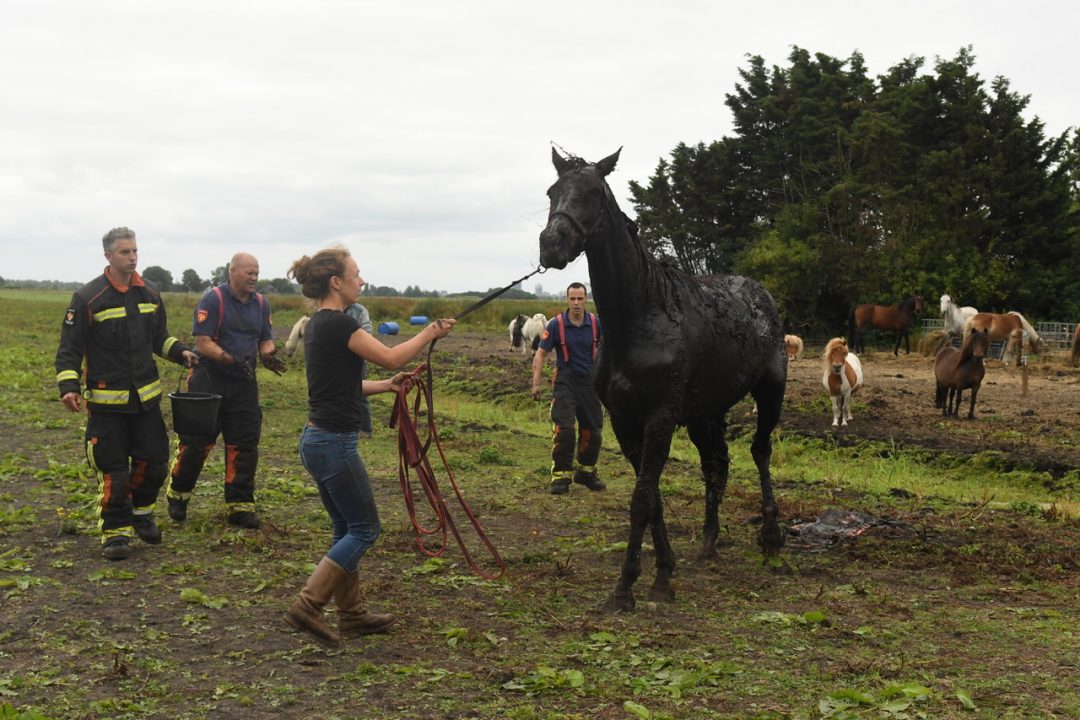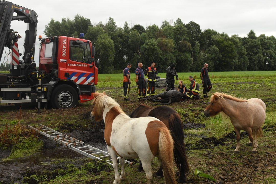 Met de nodige moeite lukte het de brandweer om het uitgeputte paard met behulp van een takel uit de modder te trekken. Een dierenarts werd vervolgens ook opgeroepen om het paard te onderzoeken. Na het modderige klusje, werden de betrokken brandweerlieden schoongespoten met een brandslang.