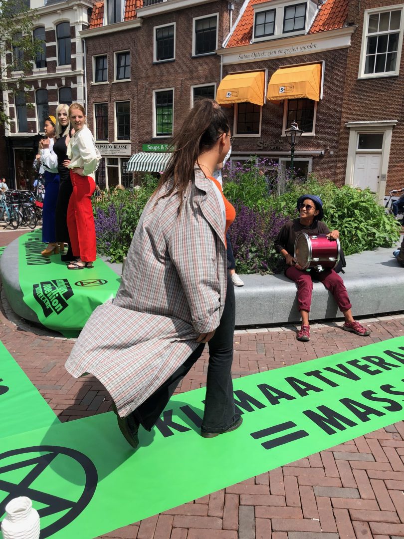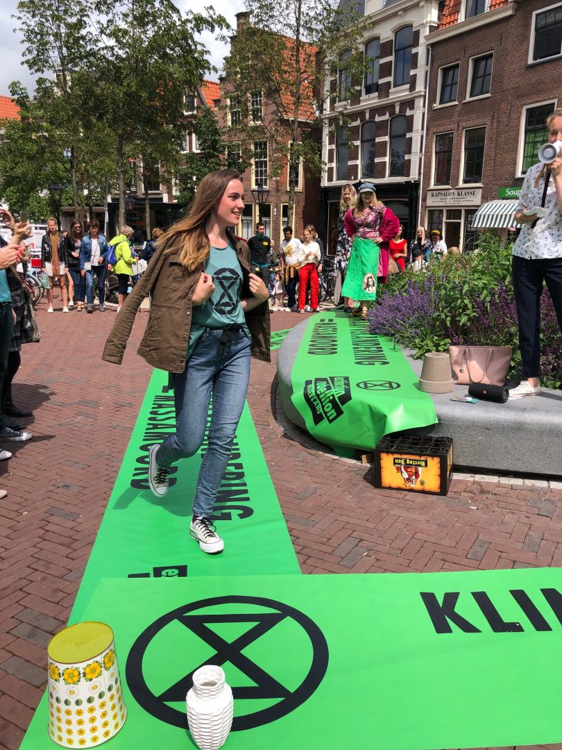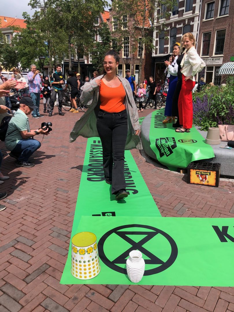Klimaatbeweging Extinction Rebellion is overgewaaid uit het Verenigd Koninkrijk en heeft nu dus ook een afdeling in Leiden. de beweging verzet zich tegen ‘fast-fashion’. Dat proces van ‘snelle mode’ verwijst naar het proces waarbij kleding steeds sneller gefabriceerd wordt en in de winkel terecht komt, maar ook weer even snel wordt vervangen door nieuwe mode, waardoor kleren ook sneller worden afgedankt.