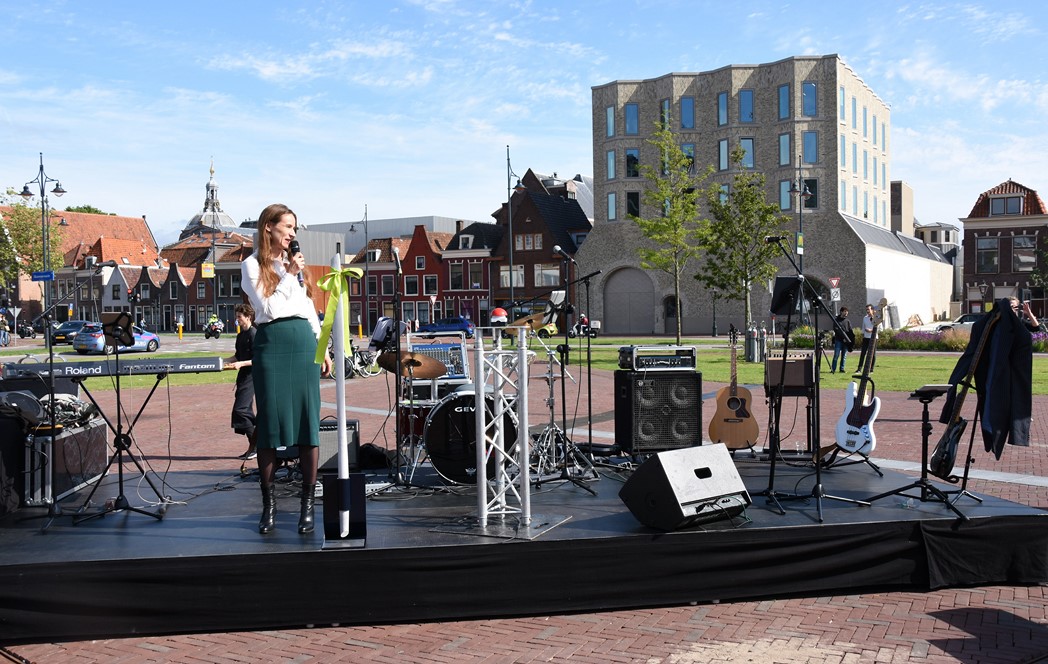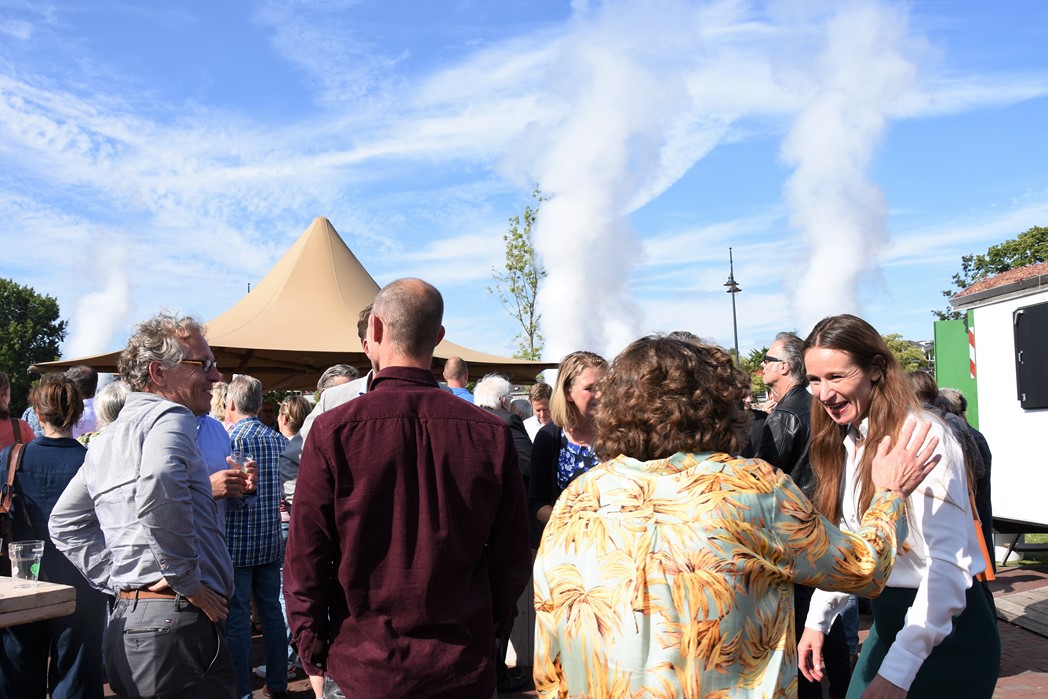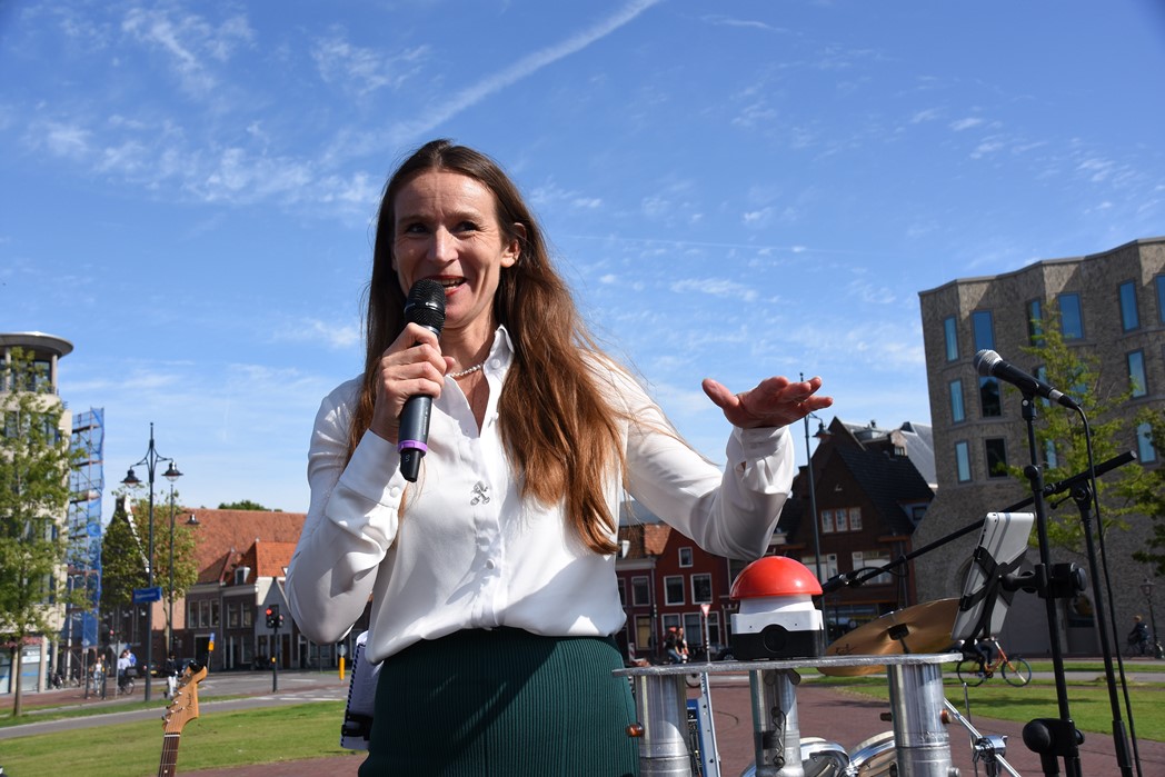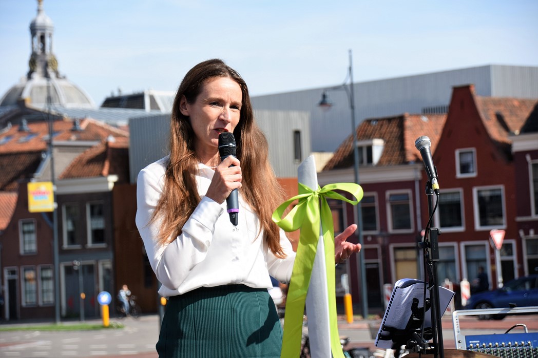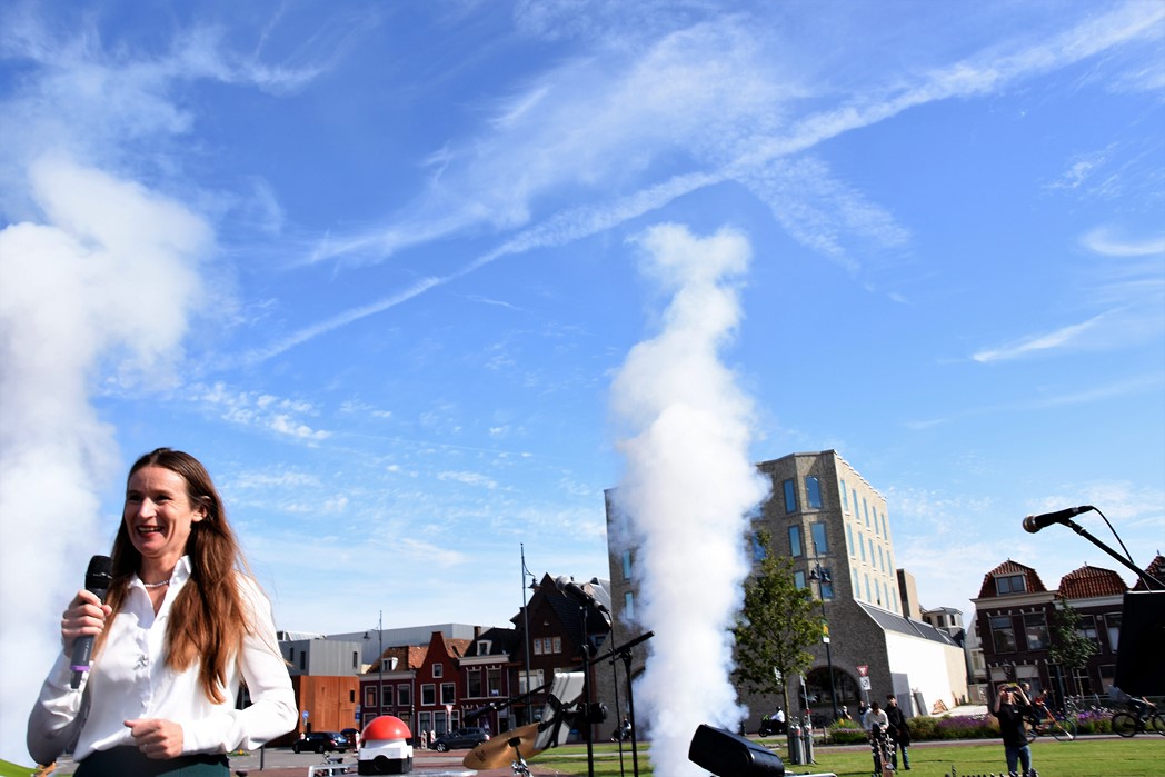 Wethouder Fleur Spijker mocht de laatste oplevering rondom het Lammermarktplein: de Valkbrug symbolisch markeren met een druk op de rode knop die een saluut van gaswolken activeerde. Een koor, een band, hapjes en drankjes zorgden voor een feestelijke stemming. En wie per auto of fiets naar het station wil, kan dat weer ongehinderd doen over een prachtige nieuwe brug.