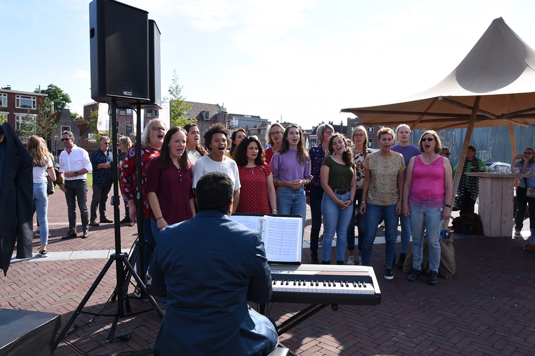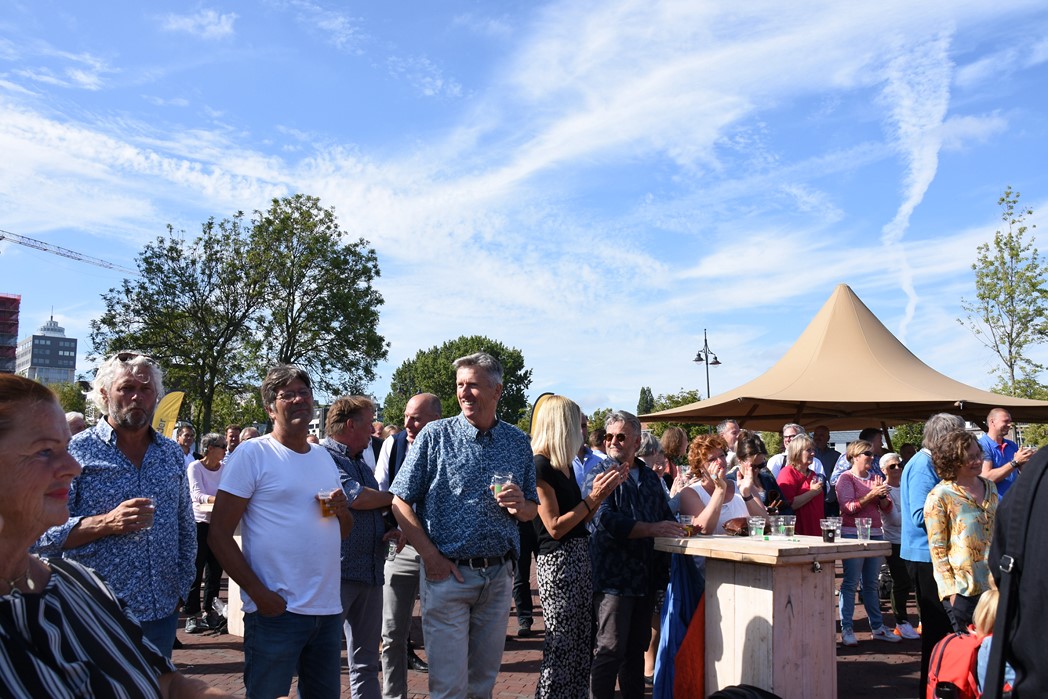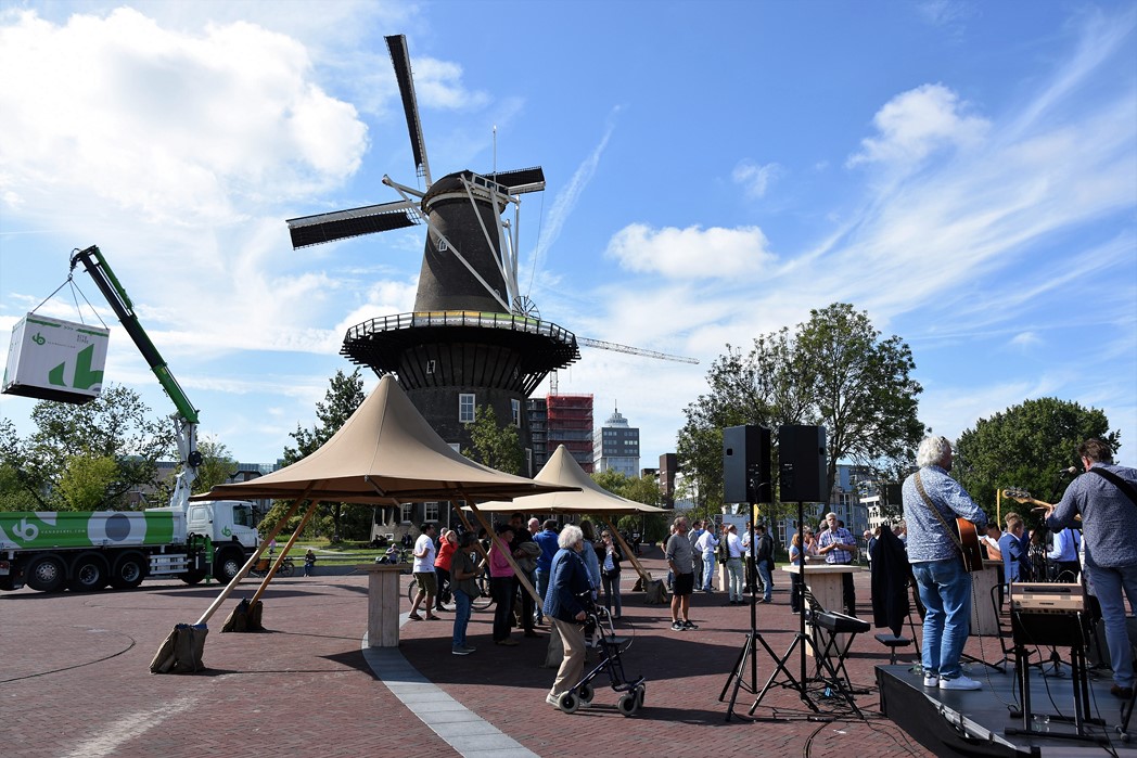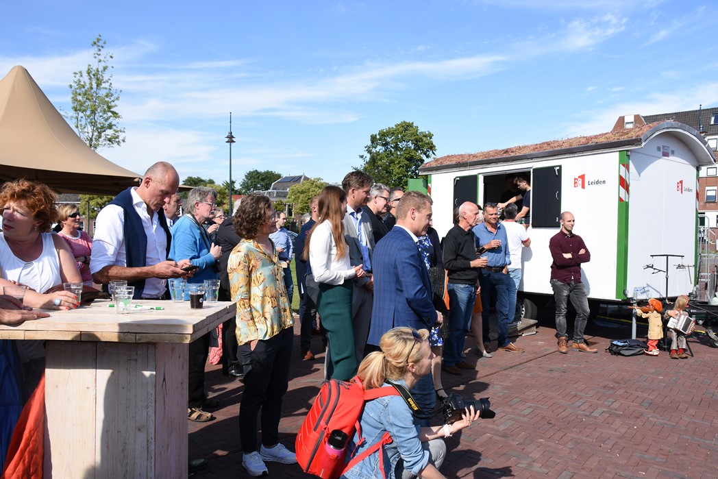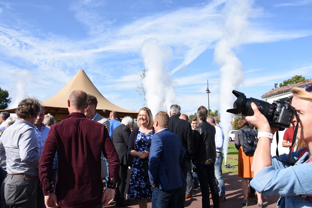 Wethouder Fleur Spijker mocht de laatste oplevering rondom het Lammermarktplein: de Valkbrug symbolisch markeren met een druk op de rode knop die een saluut van gaswolken activeerde. Een koor, een band, hapjes en drankjes zorgden voor een feestelijke stemming. En wie per auto of fiets naar het station wil, kan dat weer ongehinderd doen over een prachtige nieuwe brug.