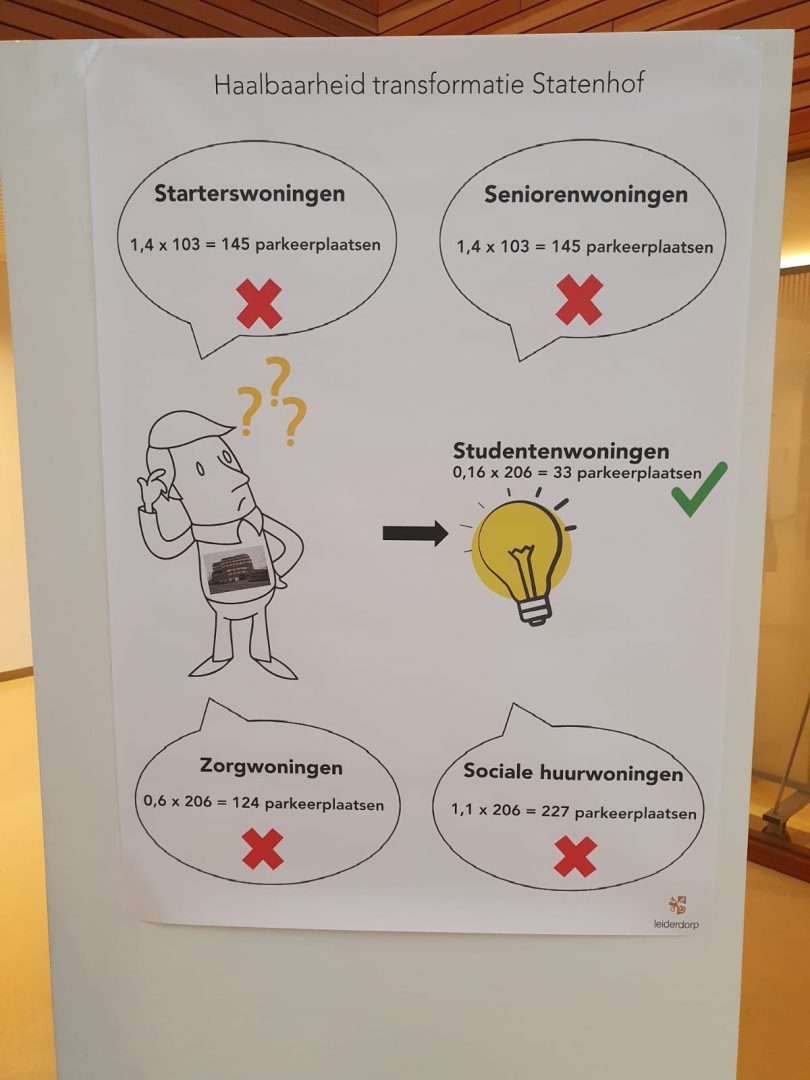 De 206 studio’s voor met name internationale studenten die de City Stone Group gaat bouwen in de leeegstaande kantoorkolos Statenhof aan de Reaal in Leiderdorp kunnen mogelijk al over iets meer dan een jaar worden betrokken. Dat zei wethouder Willem Joosten vanavond tijdens de inloopbijeenkomst in het Leiderdorpse gemeentehuis.