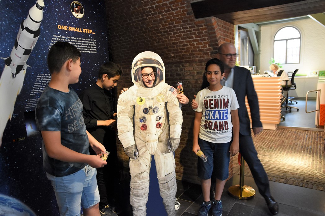 Donderdagmiddag werd de presentatie onthuld die leerlingen van de YES WeekendKlas samen met de conservatoren van museum Boerhaave bedacht en gemaakt hebben. Op de presentatie is onder andere een van de maanstenen te zien die de astronauten mee naar de aarde hebben genomen en stukje van de Nederlandse vlag die mee geweest is naar de maan. Op een schermpje zijn de start van de Apollo en de eerste stap op de maan te zien. Samen met de leerlingen onthulde directeur Amito Haarhuis de presentatie. Komend weekend is er in het museum een themaweekend over de maanlanding met rondleidingen, workshops en een familielezing door Govert Schilling, bekend van de tv-serie ‘Govert naar de grenzen van het heelal’.