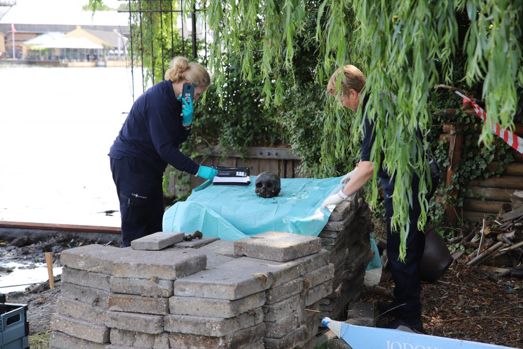 Tijdens graafwerkzaamheden in het Galgewater aan de Morsweg ter hoogte van roeivereniging Njord in Leiden zijn vanmiddag een schedel en meerdere botdelen aangetroffen. De politie, brandweer en rechercheurs van de forensische opsporing kwamen ter plaatse. De politie laat aan Sleutelstad weten dat de gevonden menselijke resten zijn meegenomen voor onderzoek en dat op dit moment niet duidelijk is hoe oud de botten zijn. Daarvoor is nader onderzoek nodig.