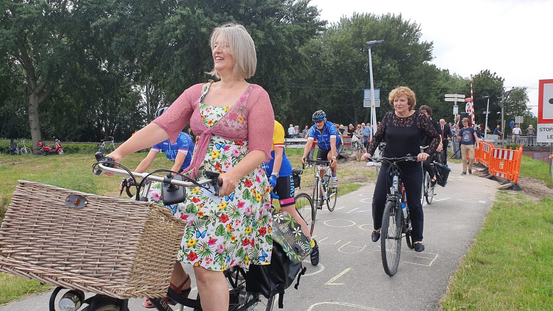 Een zangfietspad zingt niet zelf, maar is een plek war fietsers onbeschaamd en luidkeels hun gezang kunnen laten horen. Dat is dan ook precies wat bij de opening gebeurde.