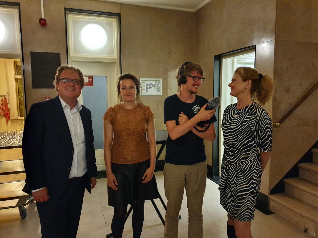 Verslaggever IJsbrand Terpstra in gesprek met Hugo Nordkamp en Donandra van Beek