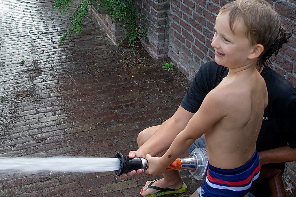 De brandweer in Leiderdorp heeft gisteravond op het plein voor Winkelhof een heus waterballet gehouden. Om 19.30 uur werden de brandslangen uitgerold en al snel liep de Statendaalder vol met vooral kinderen uit het dorp die op het aangekondigde evenementje waren afgekomen.