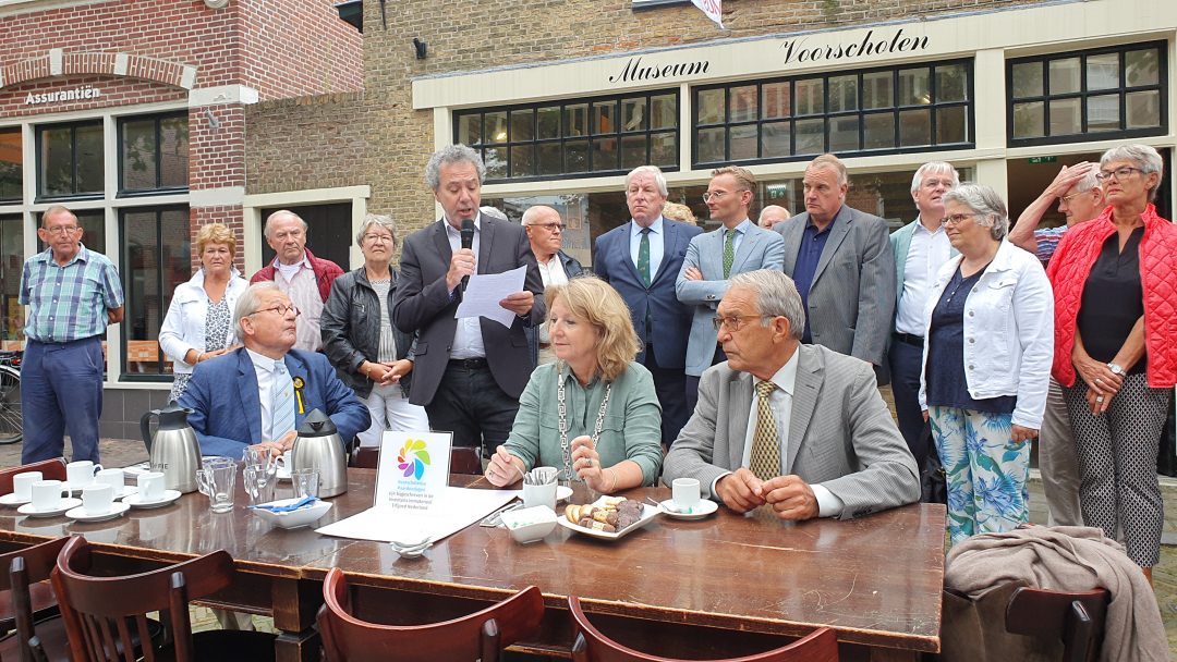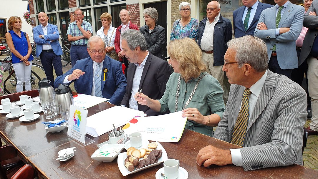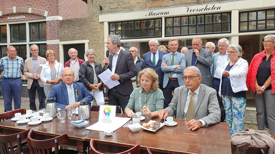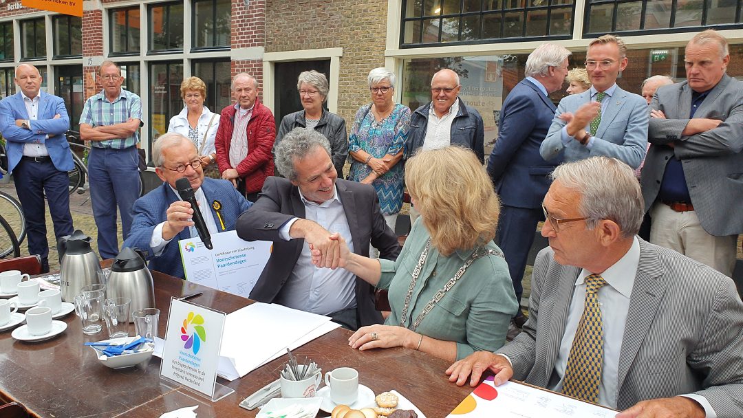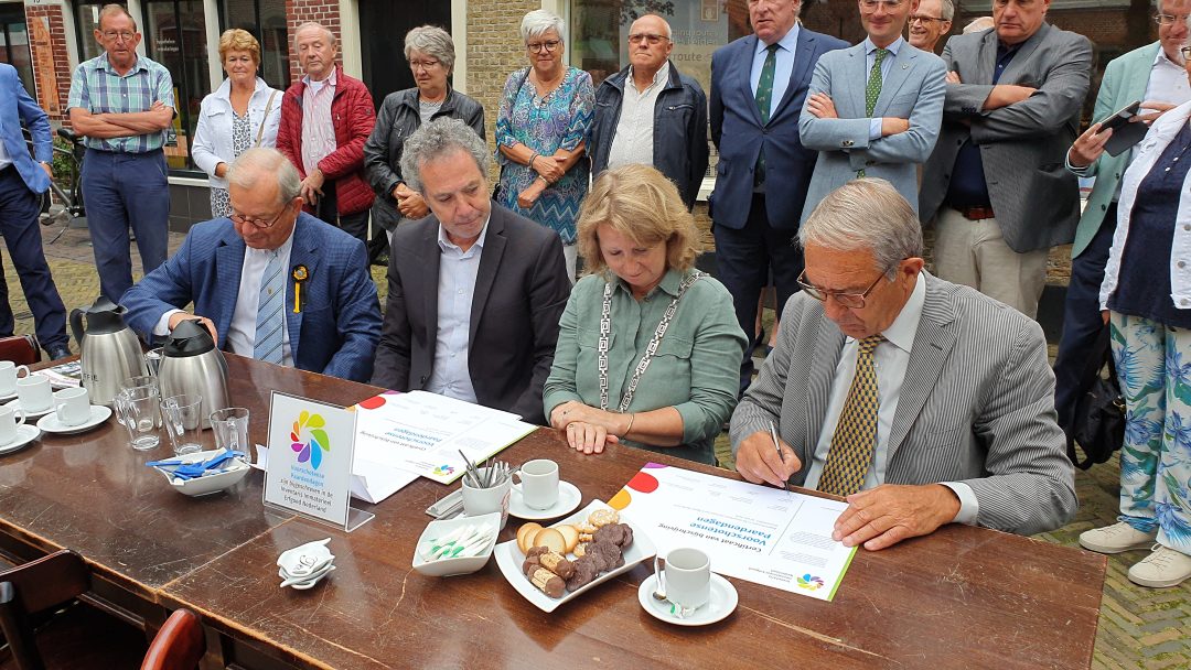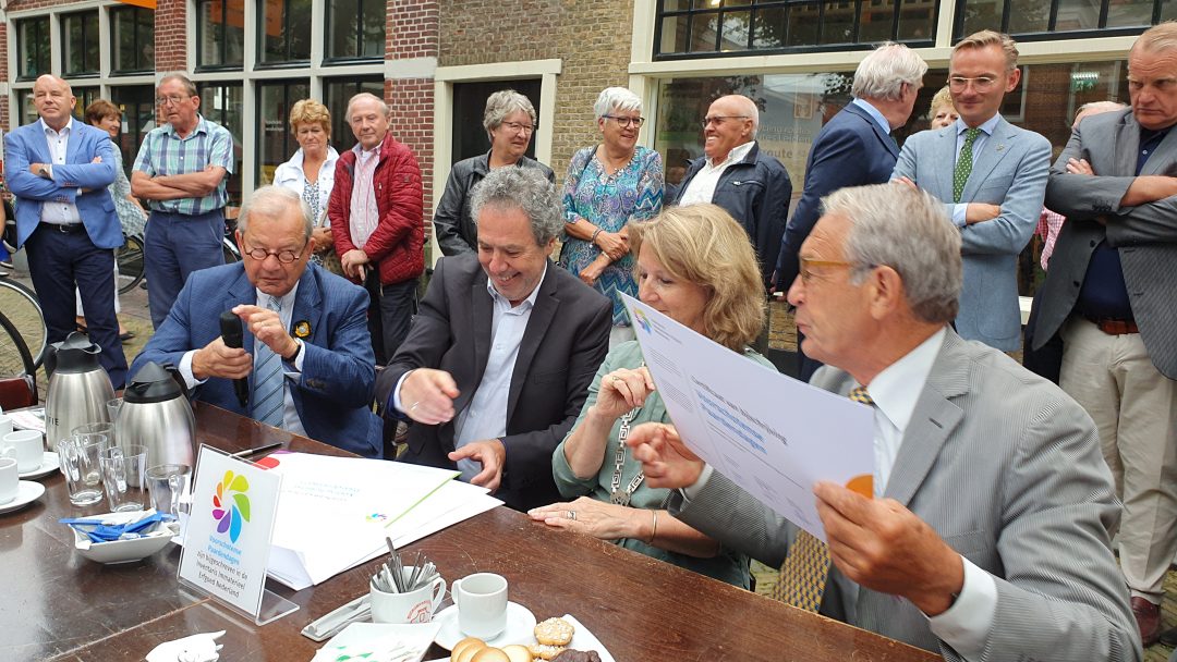 Tijdens een officieel moment voor de deur van Museum Voorschoten werden de handtekeningen gezet op de opname in de inventaris formeel te bezegelen.