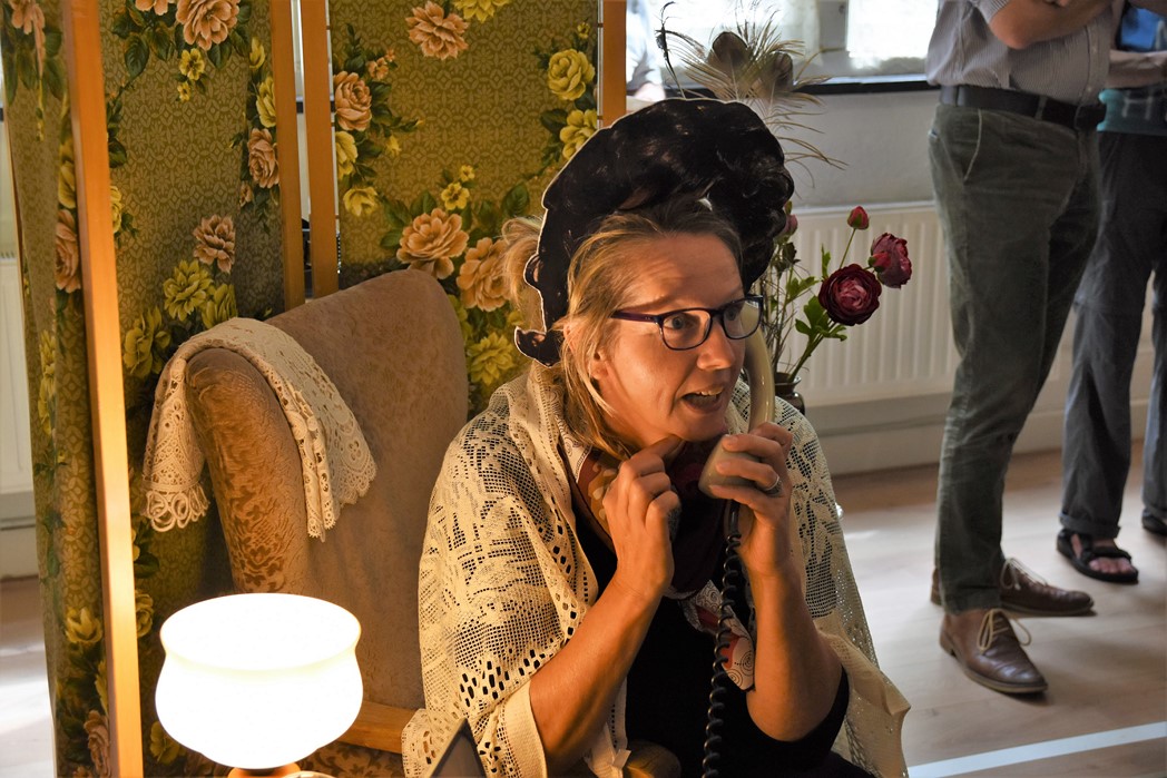 Verslaggeefster Gerry van Bakel in gesprek met Gideon Roggeveen van Old School, familieleden Willem en Betty Bey, fans van de Zangeres Zonder Naam en Linda Capel van BplusC over het Leids Amateurkunstfestival dat dit jaar in het teken staat van de koningin van het Levenslied.