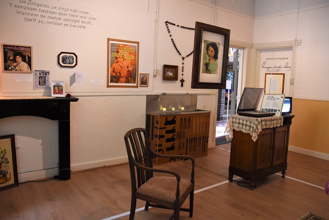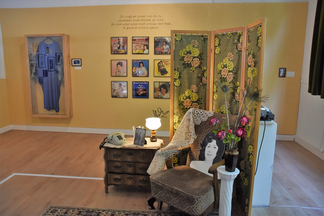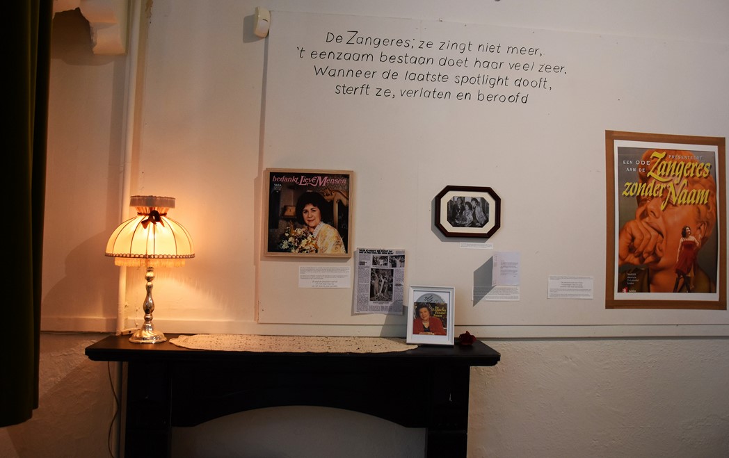 Gideon Roggeveen en Roos-Marijn Kinkel, uitbaters van Old School, dachten dat de zangeres die miljoenen platen verkocht toch ook wel een klein podium verdiende op haar honderdste geboortedag. Een oproep bracht platenhoezen, een jurk, foto’s, filmbeelden en allerhande parafernalia naar Old School aan het Pieterskerkhof. Samen maakten ze er een intiem eerbetoon van aan de koningin van het levenslied.