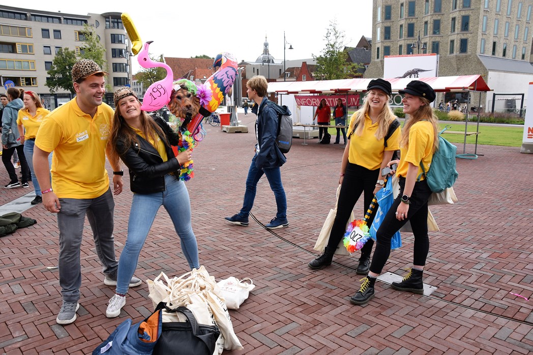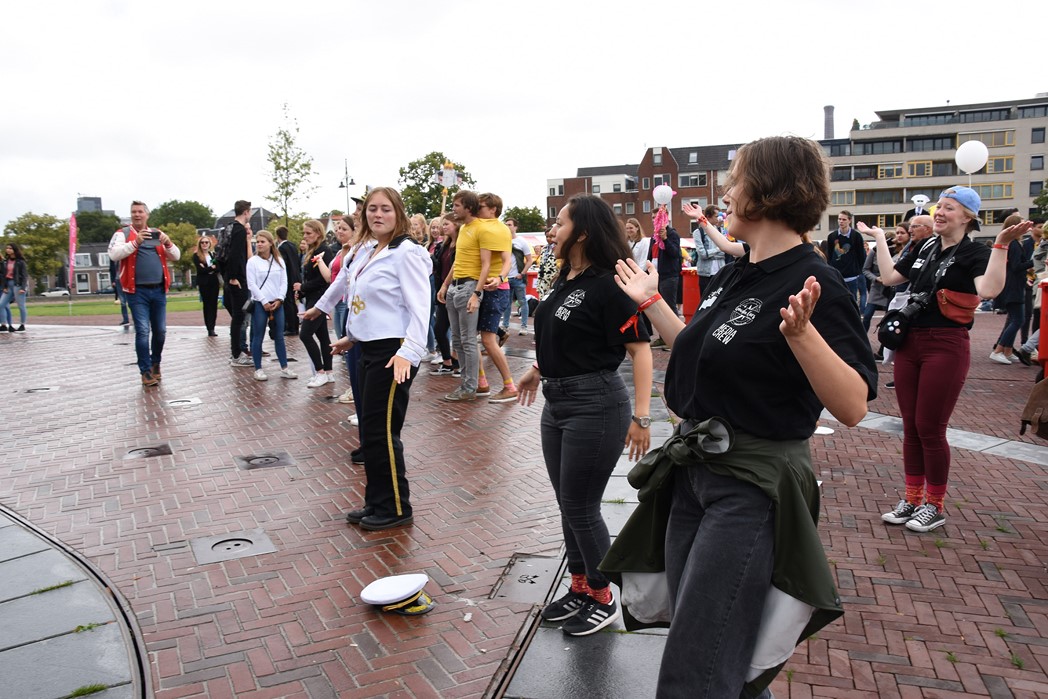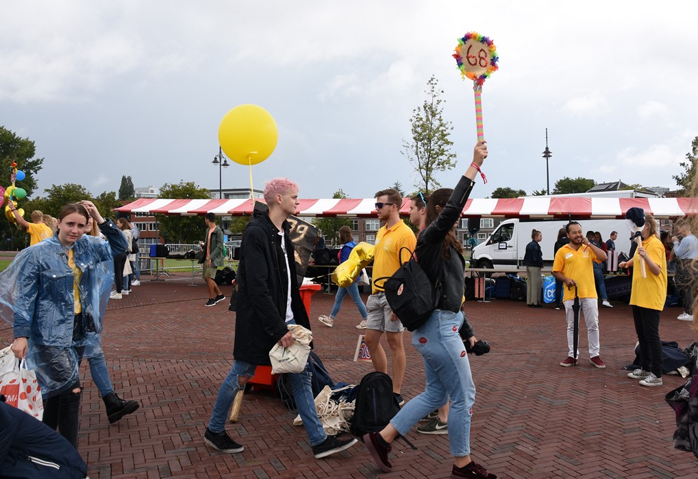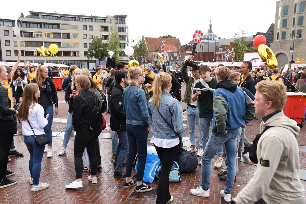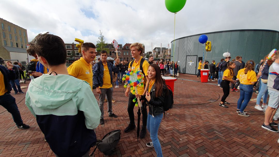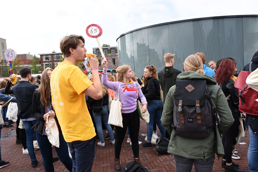 De introductieweek voor de circa 3.500 nieuwe Leidenaren is vanmorgen om 9.30 uur begonnen op de Lammermarkt in Leiden. De hele week maken de nieuwe studenten van de Hogeschool Leiden en de Universiteit Leiden kennis met de stad, de universiteit en de studenten- en studieverenigingen.