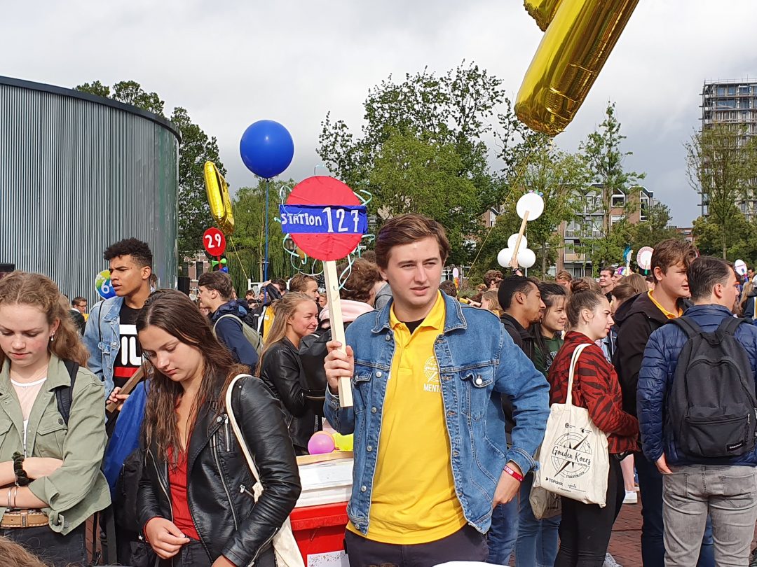 Na het verzamelen op de Lammermarkt waarbij de eerstejaars werden verdeeld over ongeveer 350 mentorgroepjes, volgt tussen de middag een stadspicknick in het Huigpark. Vanmiddag is net als elk jaar de informatiemarkt in het gebied rond de Nieuwe Rijn. De studenten kunnen daar vooral kennismaken met het Leidse verenigingsleven.