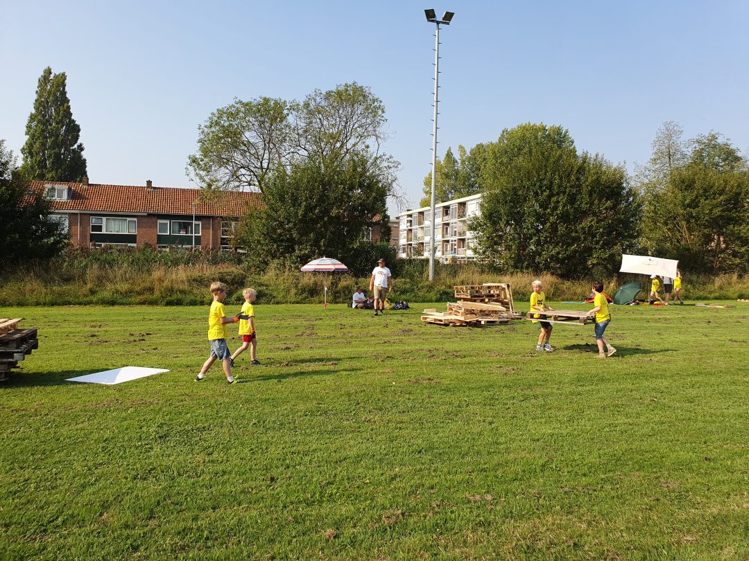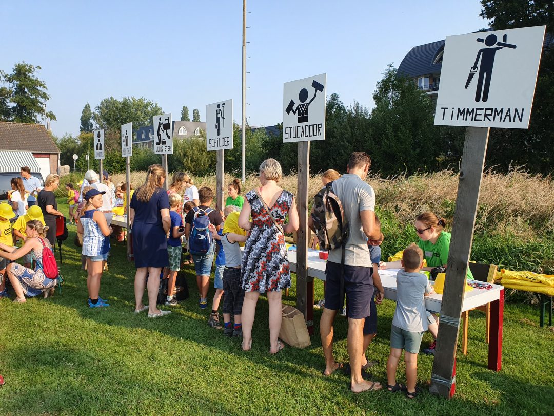 Op het terrein van de IJsclub Voorschoten is vandaag in de stralende zon Bouwdorp Voorschoten van start gegaan. Voor de achtste keer en het is inmiddels dus een beproeft concept aan het einde van de zomervakantie. Een week lang hutten bouwen en daarbij zoveel mogelijk rekening houden met het gekozen thema. Vorig jaar was dat ‘strand’, dit jaar ‘Op de bouwplaats’.