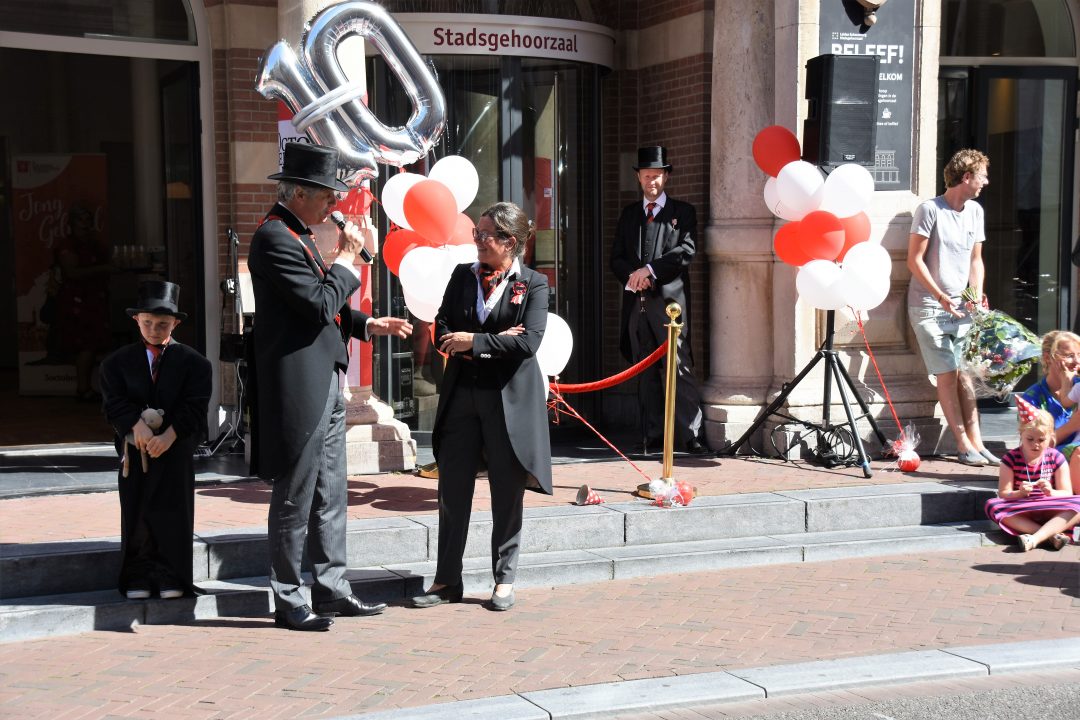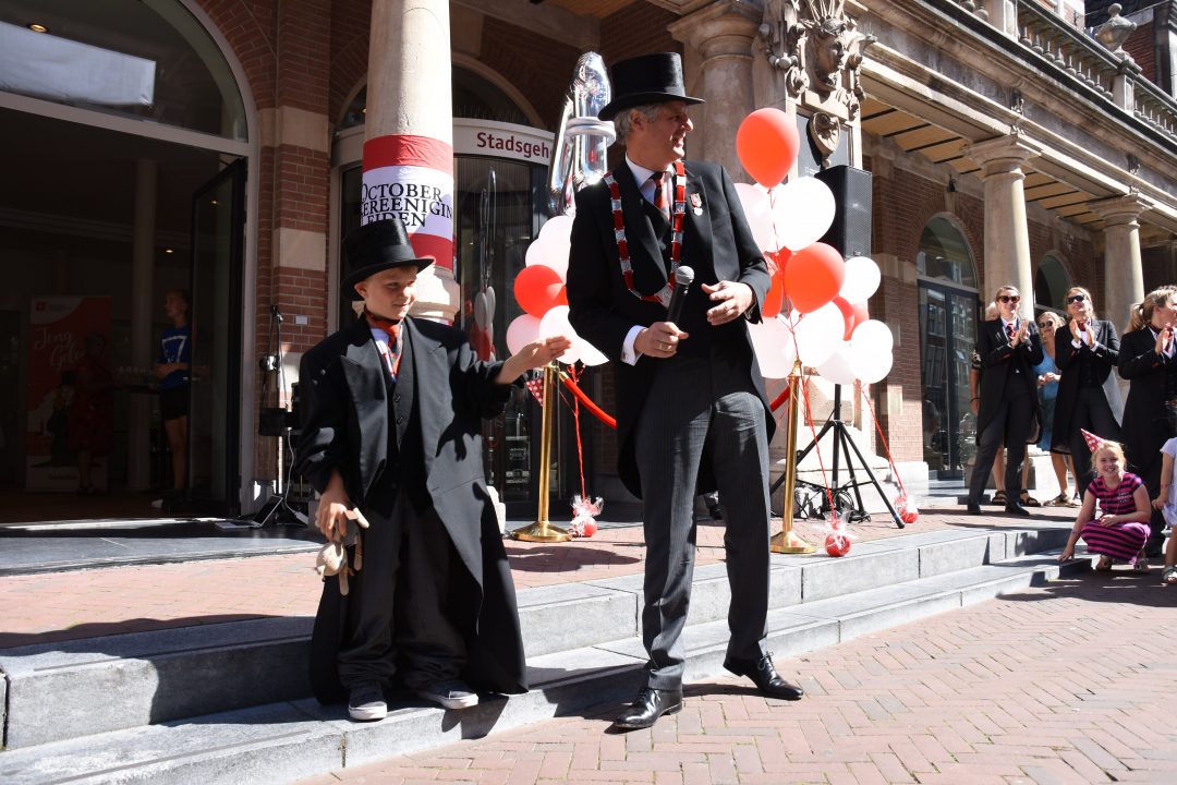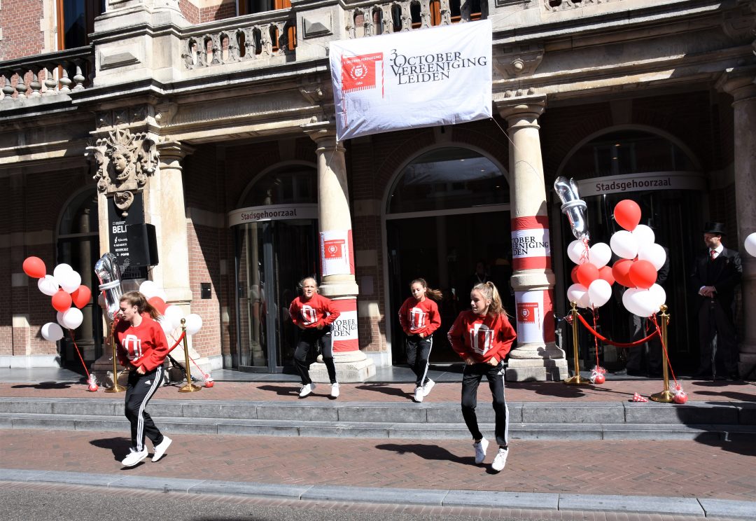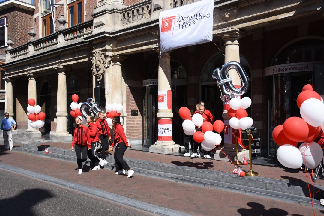 Zaterdagmiddag werd het Servicepunt van de 3 October Vereeniging met een swingende dansdemonstratie van DC Dance geopend. Het thema van het Feest der Feesten is dit jaar ‘Jong Geleerd’. Vandaar dat de openingstoespraak werd gedaan door minivoorzitter Sepp van der Zon, die voorzitter Rik Kamps voor hield, ‘over 20 jaar sta ik hier weer, maar dan in jouw rol’. Het Servicepunt bestaat dit jaar tien jaar, daarom was er voor iedereen gebak en werden er op de Breestraat rood/witte feestmutsjes uitgedeeld.