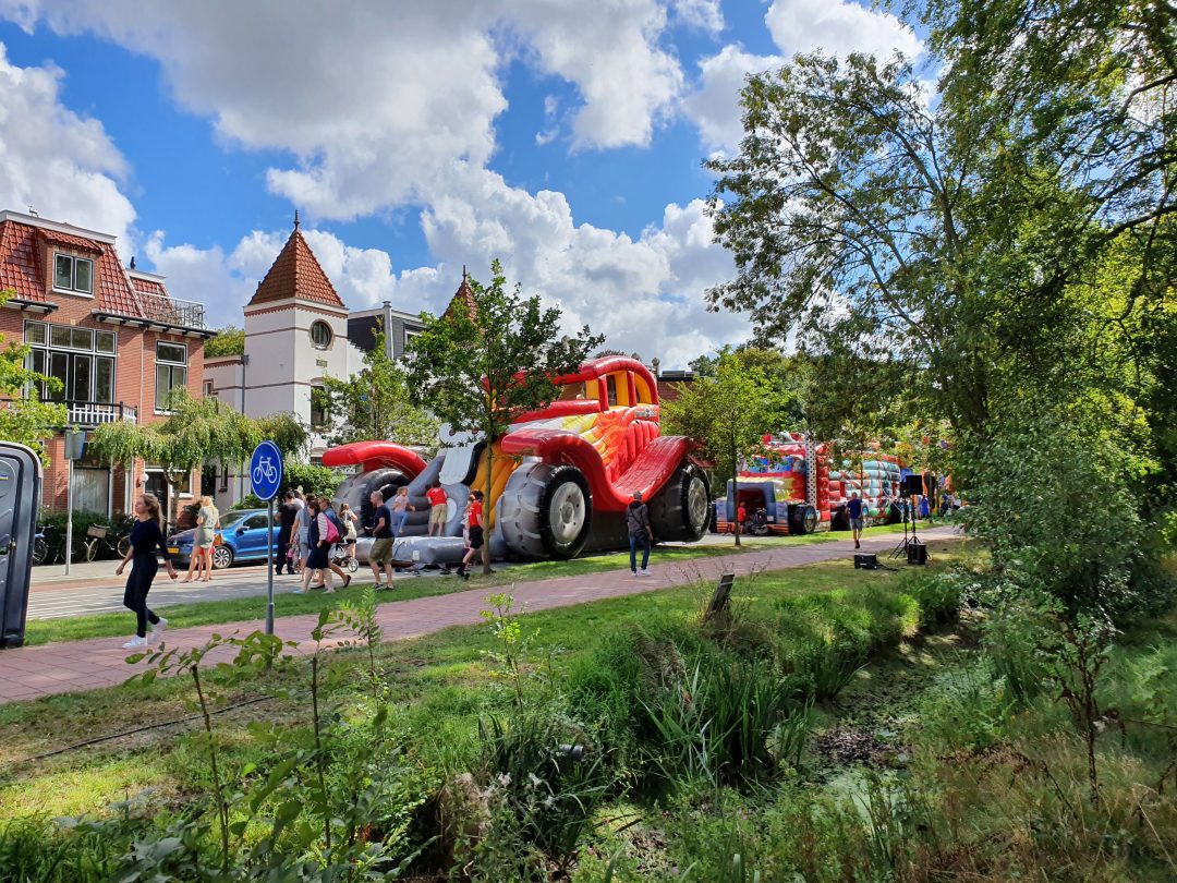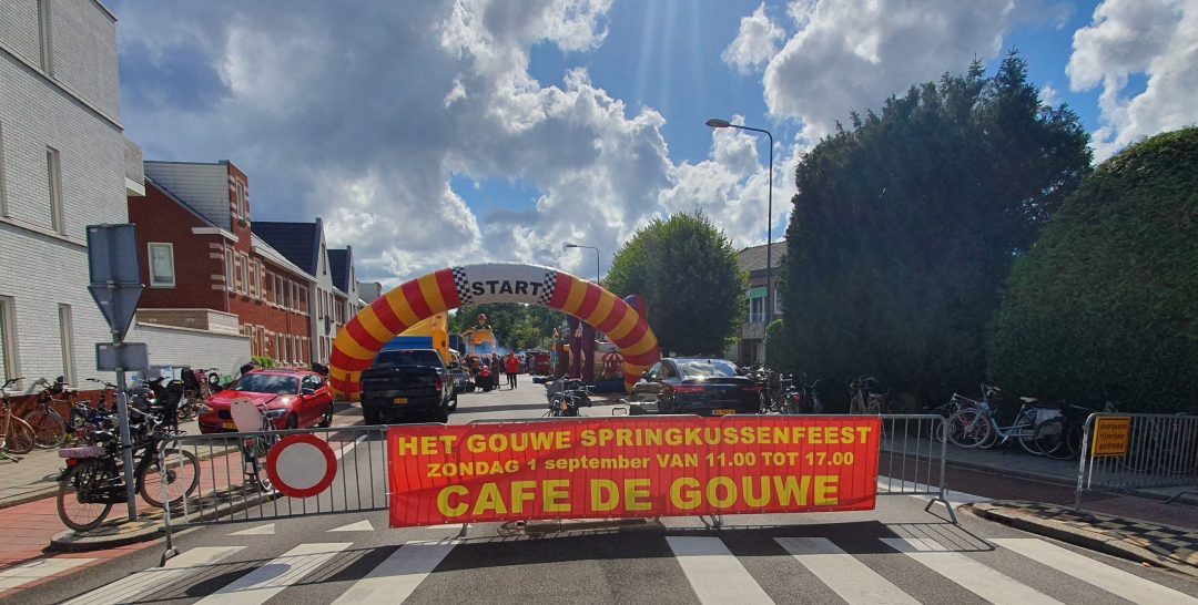 Op een zonovergoten Rhijngeesterstraatweg organiseerde café De Gouwe zondagmiddag voor de vijfde keer het Springkussenfeest. Voor de kinderen was er volop de ruimte om te rennen en te springen, terwijl de ouders vakantie-avonturen konden delen. “Dat is het mooie van dit evenement: het is op de laatste dag van de zomervakantie en dus kunnen klasgenootjes elkaar weer zien”, zegt een tevreden Chris Schollaardt, die zijn geluk met het weer – ‘daarvan ben je uiteindelijk toch het meest afhankelijk’ – niet op kon.