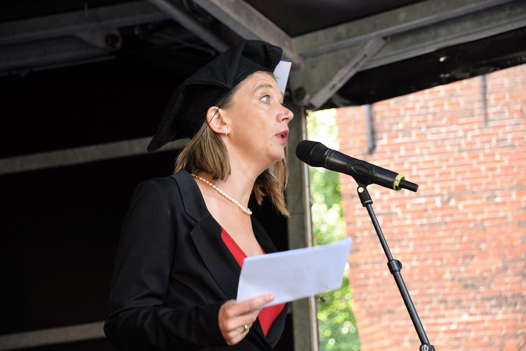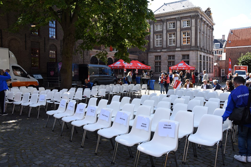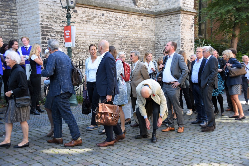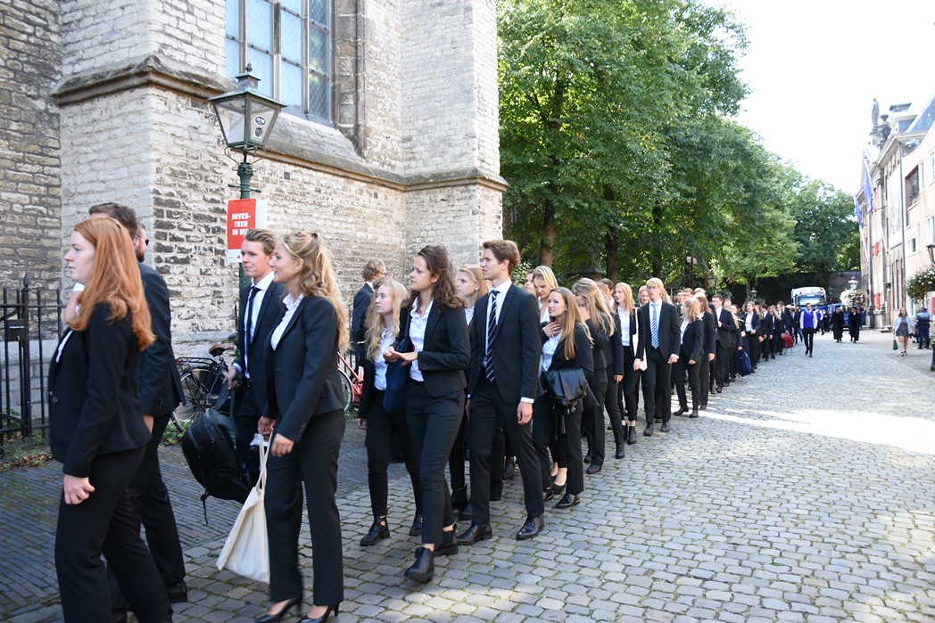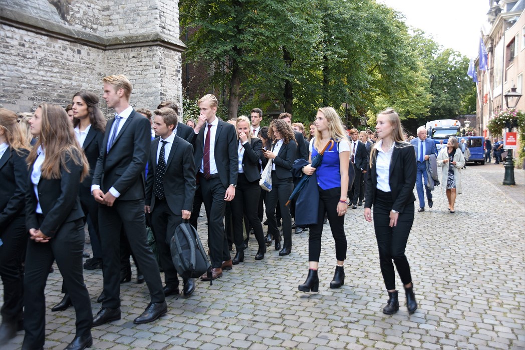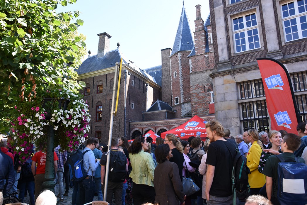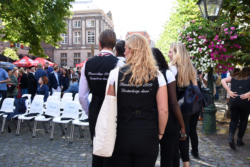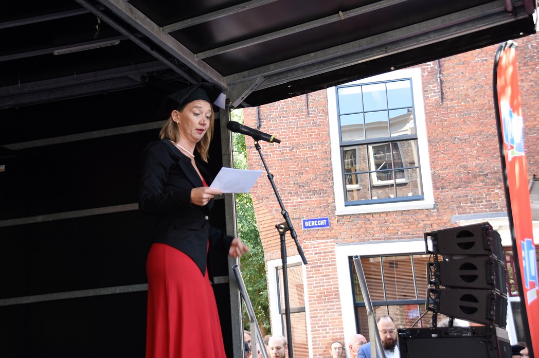 Gestaald kader is het niet. Evenmin zijn het geharnaste actievoerders, gelet op de woorden van één van de sprekers: “Ik had eigenlijk een paar toga’s verwacht op een verregend plein”. Volgens de aanwezige politieman zijn er zo’n 750 mensen op het zonovergoten Leids plein, het Gerecht. Dat is de opkomst bij de alternatieve ‘de ware’ opening van het academisch jaar. Op minder dan honderd meter van de plechtstatige officiële opening in de Leidse Pieterskerk. “Dat is veel, want dan zit je wel aan de max voor dit plein”, zegt hij er nog bij.