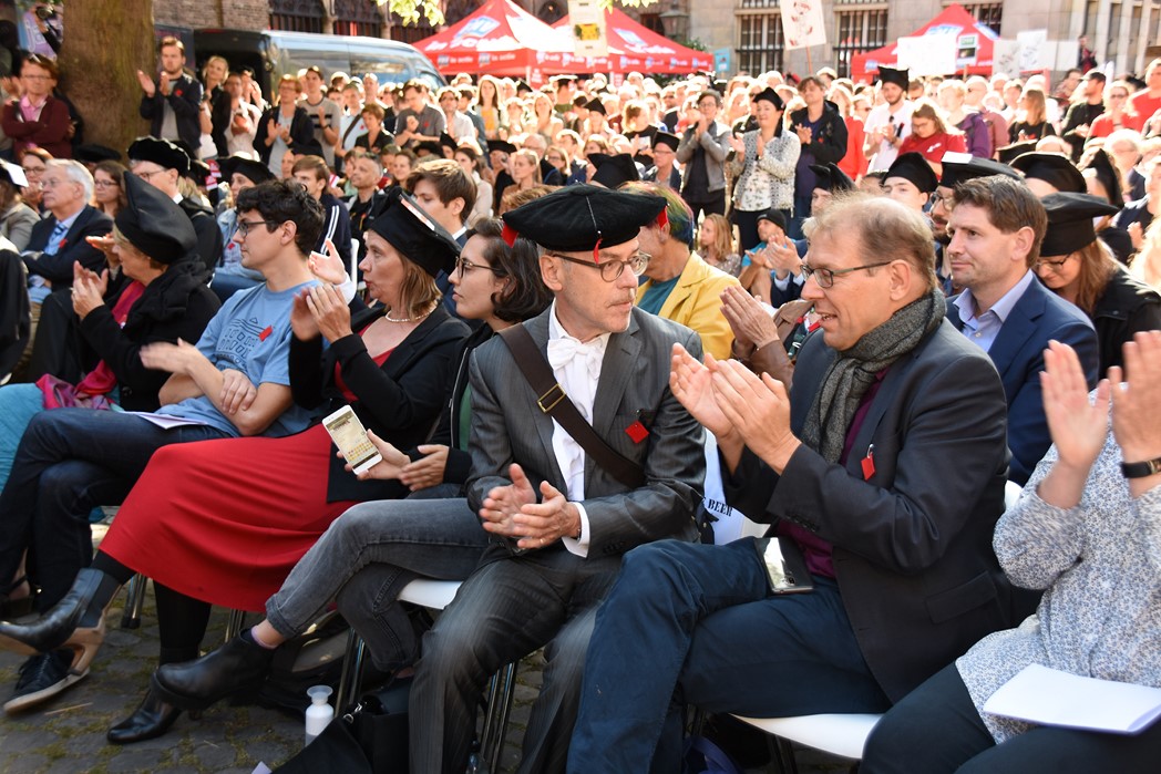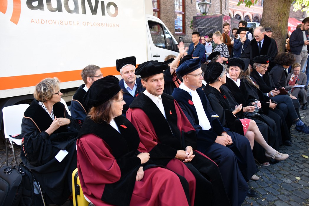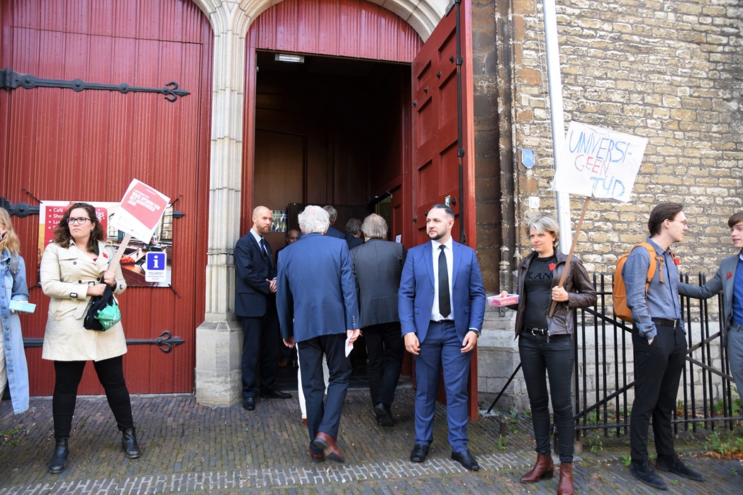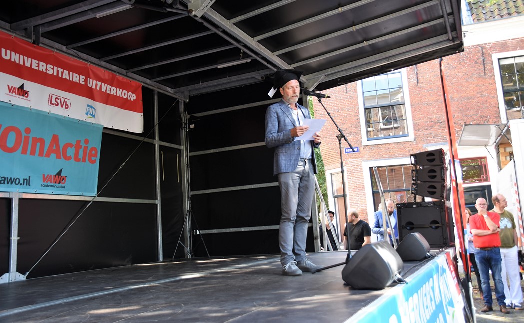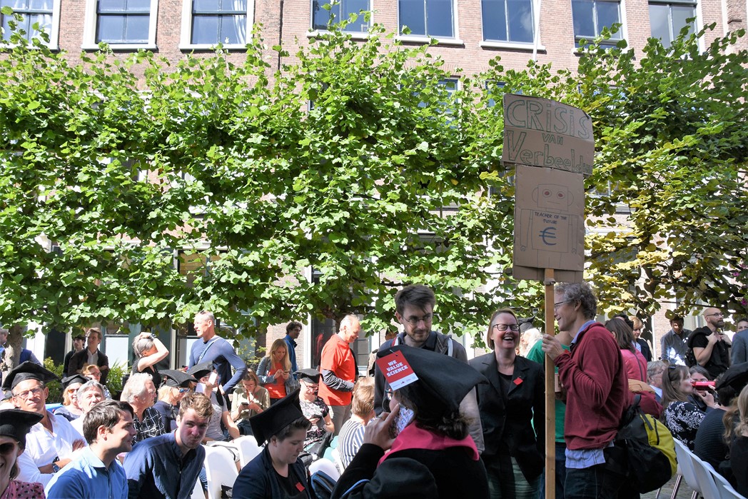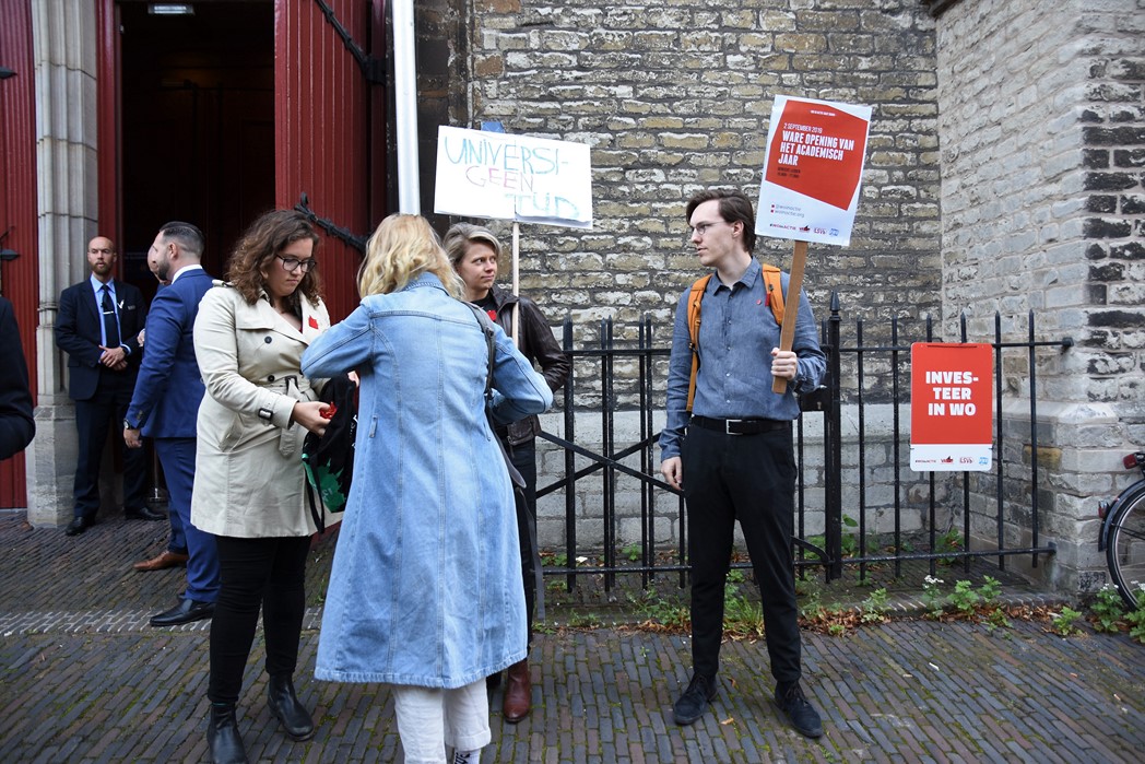 Maandagmiddag benadrukt iedereen dat het om iets uitermate serieus gaat. Niet per sé de bezuinigingen, niet per sé de huisvesting, niet per sé de werkdruk; boven al gaat het over de academie als gemeenschap. Of, zoals Ingrid Robeyn van WO in Actie het formuleerde: “Een universiteit is geen bedrijf in handen van CvB’s. De universiteit is van óns. (…) Wíj zijn de universiteit.” Dat maakt meteen duidelijk waarom dit dus de ware opening van het academisch jaar is.