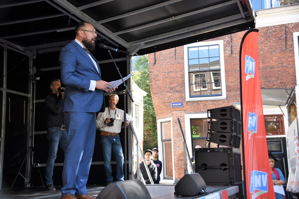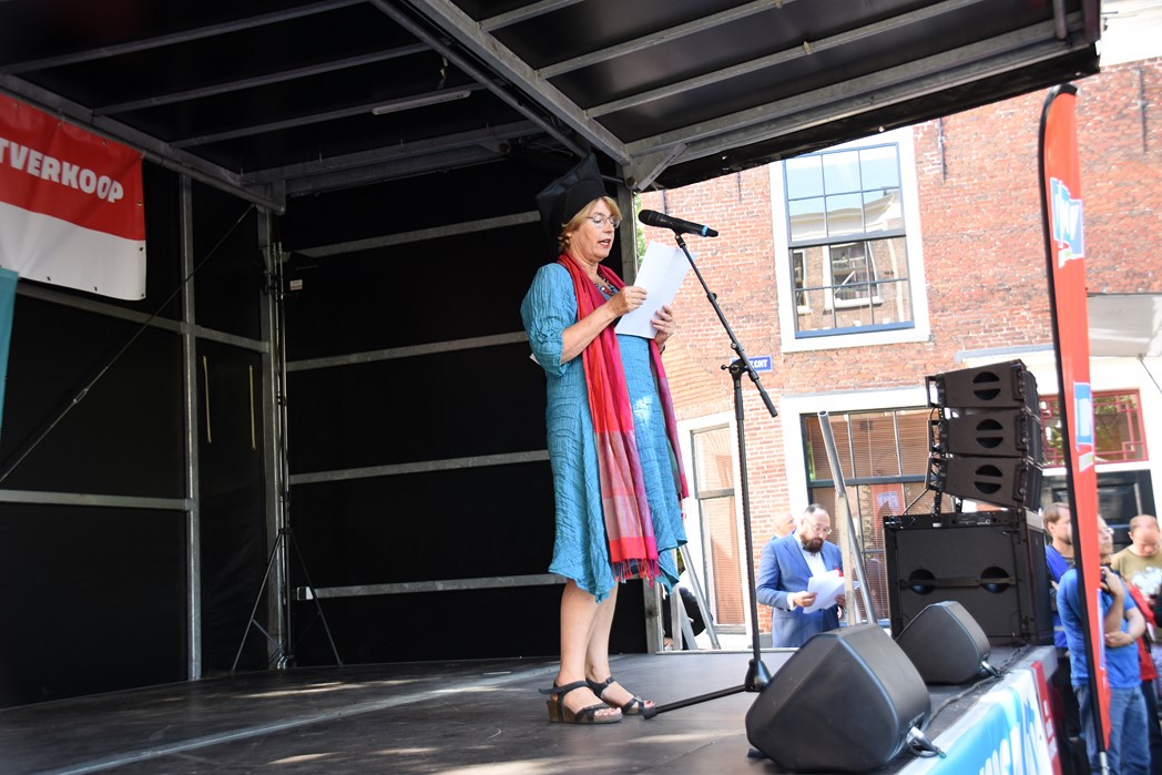 Het is eigenlijk een van de weinige momenten dat een klein beetje sprake is van een actie-stemming. Het Gerecht ademt vooral de sfeer van nette mensen die netjes luisteren naar anderen die vertellen wat niet goed is. Een paar borden met leuzen boven de menigte, af en toe instemmend geklap en gejuich, veel vierkante rode lapjes stof van WO In Actie, geen enkele wanklank. Netjes maakt het niet minder serieus. “Er zijn hier nu mensen die voor het eerst van hun leven bij een demonstratie zijn”. Stampen, gooien of gillen doen ze niet. Maar wat vanaf het podium wordt gesteld, wordt wel met enthousiasme ontvangen: “De polder loopt tegen z’n grenzen aan. (…) Dit is een politieke strijd, geen bestuurlijk overleg. (…) We moeten de druk opvoeren. (…) Verkiezingsprogramma’s zijn essentieel”.