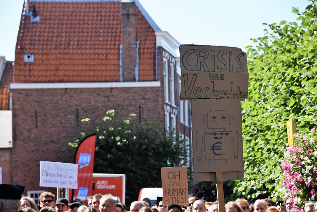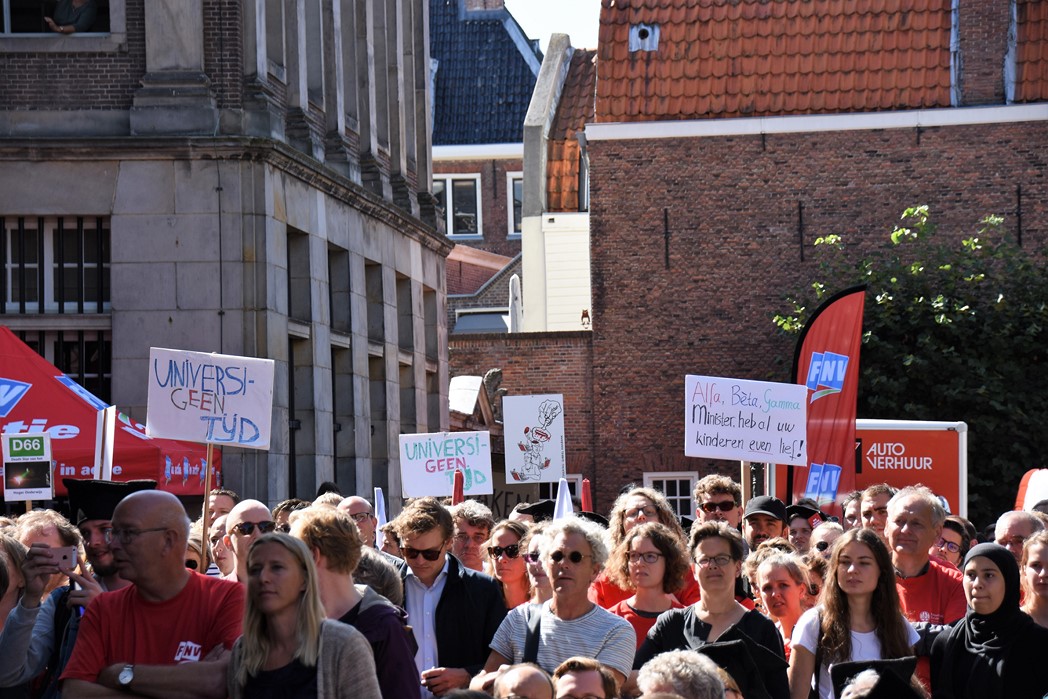 Als die botsing van zienswijzen de basis is, dan is de discussie nog een lange en stevige. Paul de Beer zei daarover: “Meer geld alleen zal niet voldoende zijn, en, zeg ik zachtjes, misschien niet eens noodzakelijk”. Het zou weleens veel fundamenteler kunnen zijn. In dat licht is het saillant dat op het plein D66-kamerleden aanwezig waren en daarmee protesteerden tegen een D66-minister. Rens Bod (WO in Actie) zag het gebeuren: “Solidariteit leek lange tijd niet meer te bestaan aan de universiteit. Daar is hij teruggekeerd. (…) Word lid van een vakbond. Slechts 20% is lid. We moeten dit sámen doen!”. Dat was het andere glasheldere moment: “Wij willen een minister die opkomt voor de wetenschap. Wij willen geen minister die het onderwijs kapot maakt. (…) WO in Actie zegt het vertrouwen in deze minister op en roept haar op om af te treden”. Daaraan is geen woord Chinees.