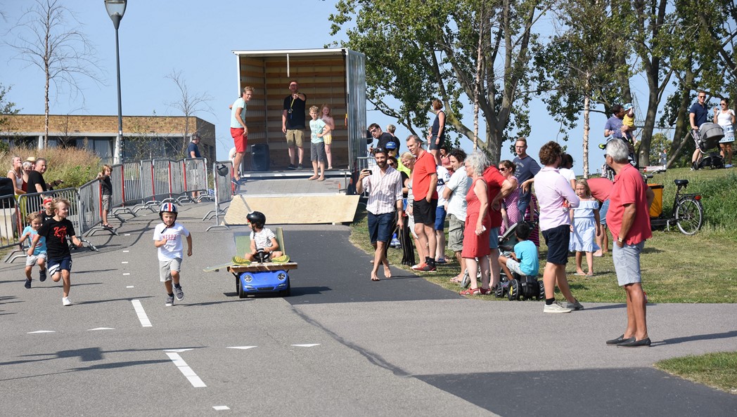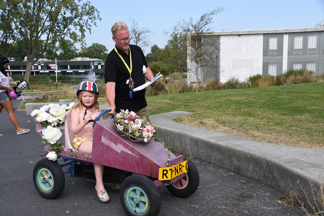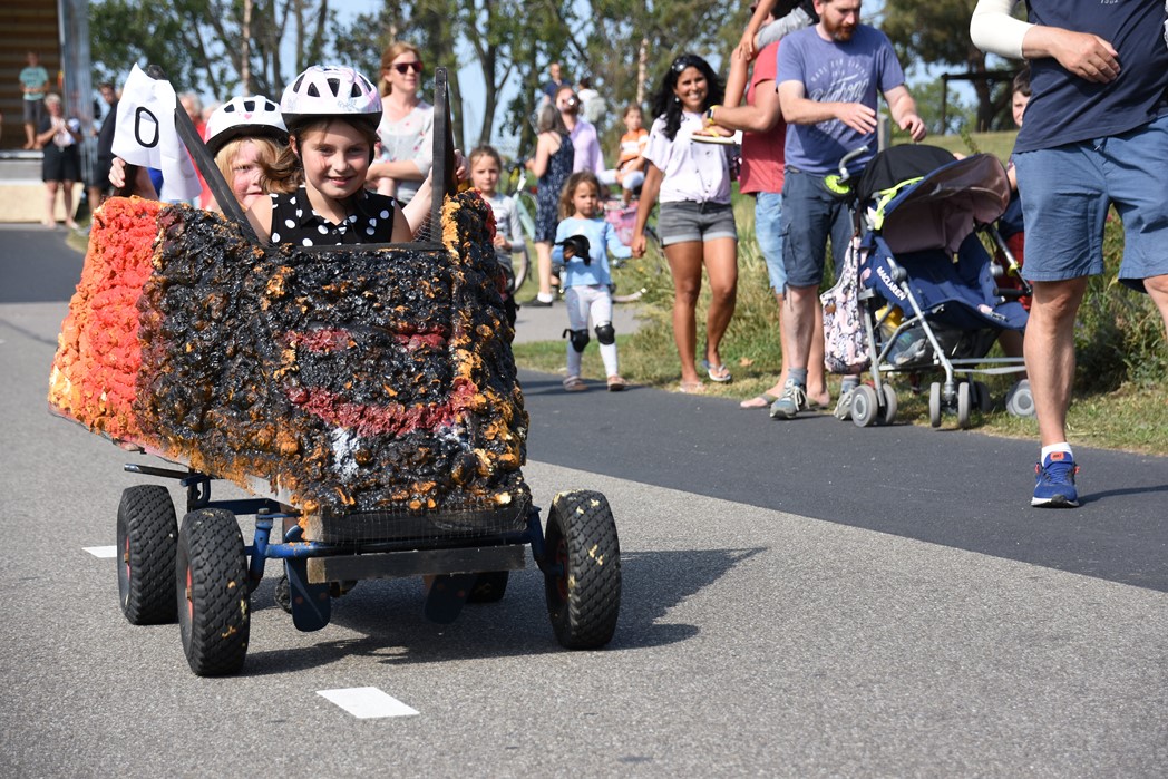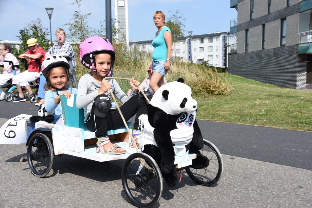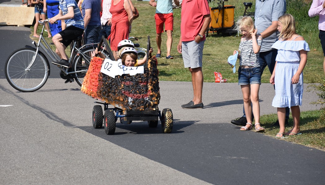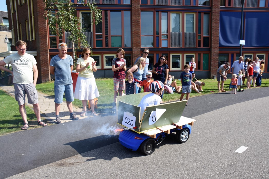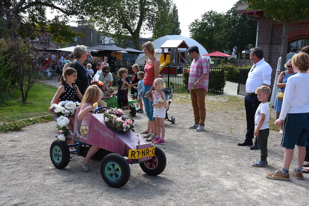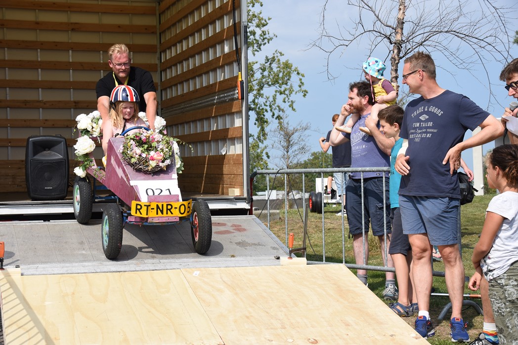 Een van de hoogtepunten van het wijkfeest is elk jaar de zeepkistenrace. Nadat de wethouder rond gekeken had in het parkje langs de Maresingel liep hij met de bestuurders van de zeepkisten naar de heuvel bij de Drakentuin om het startsein van de Zeepkisten Race 2019 te geven. De snelste tijd werd ook dit jaar weer neergezet door Clint Verlooij die zich met de supersnelle tijd van 17 seconden winnaar van 2019 mag noemen.