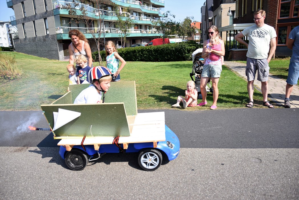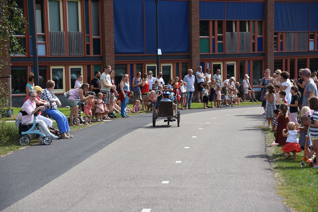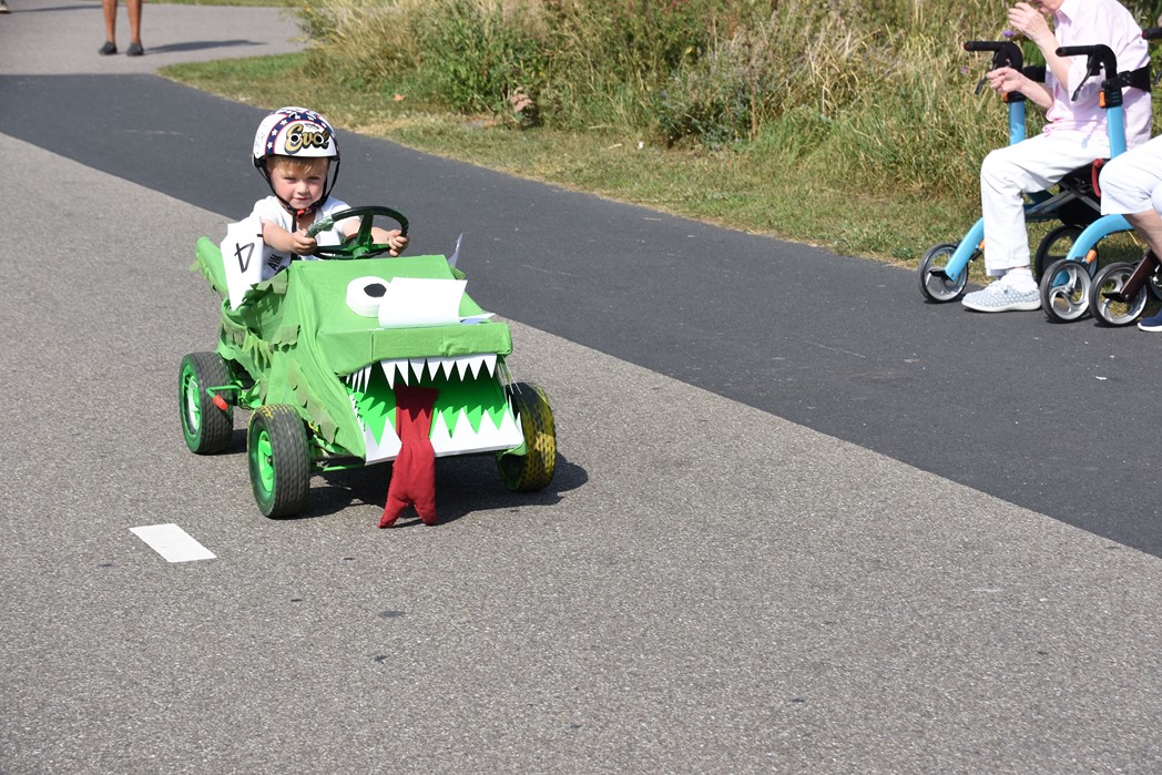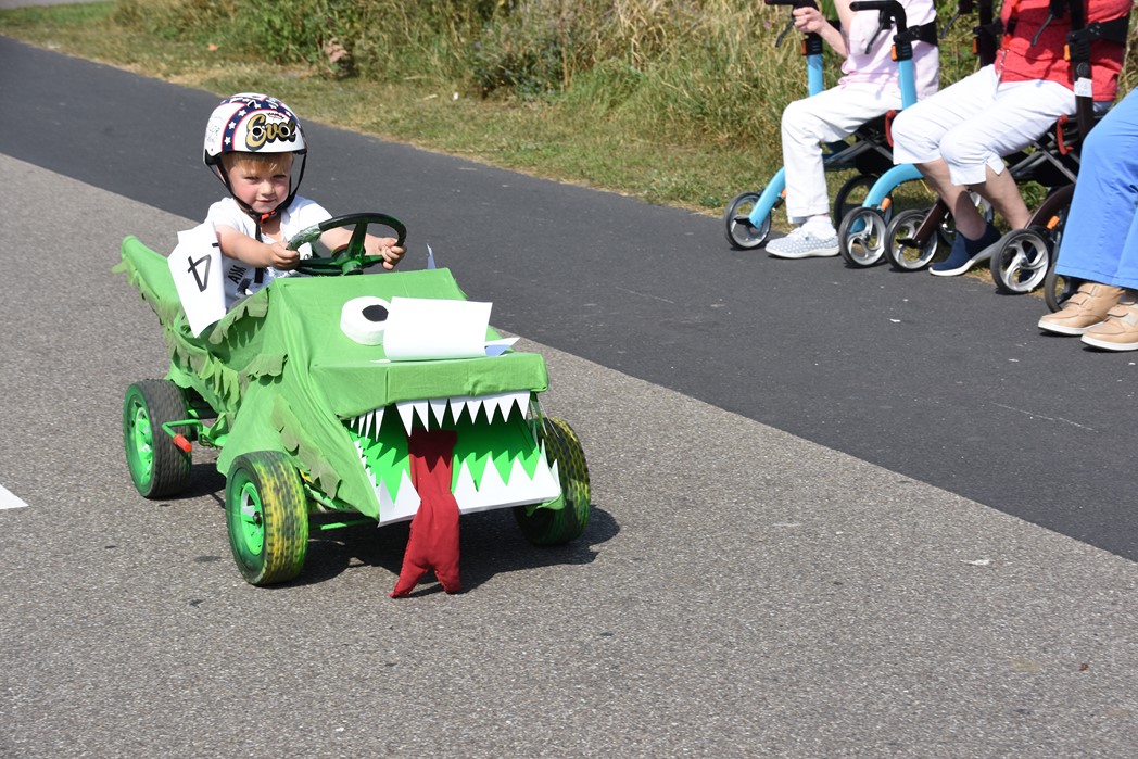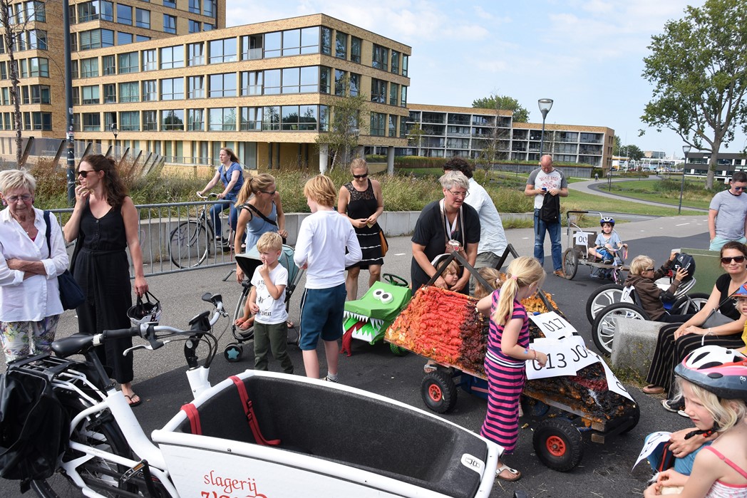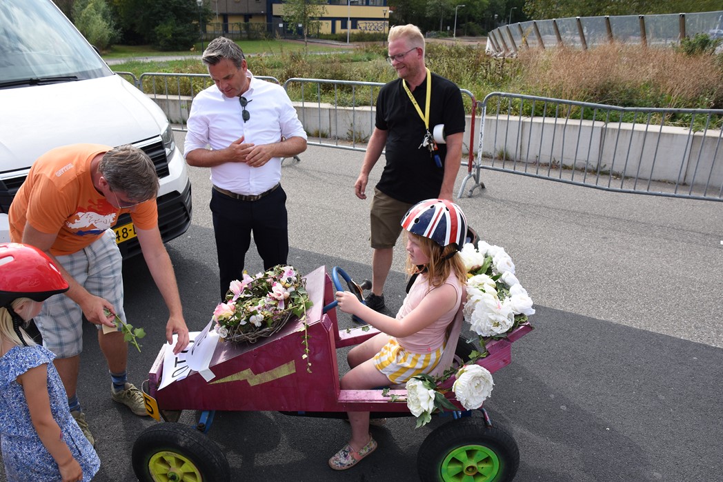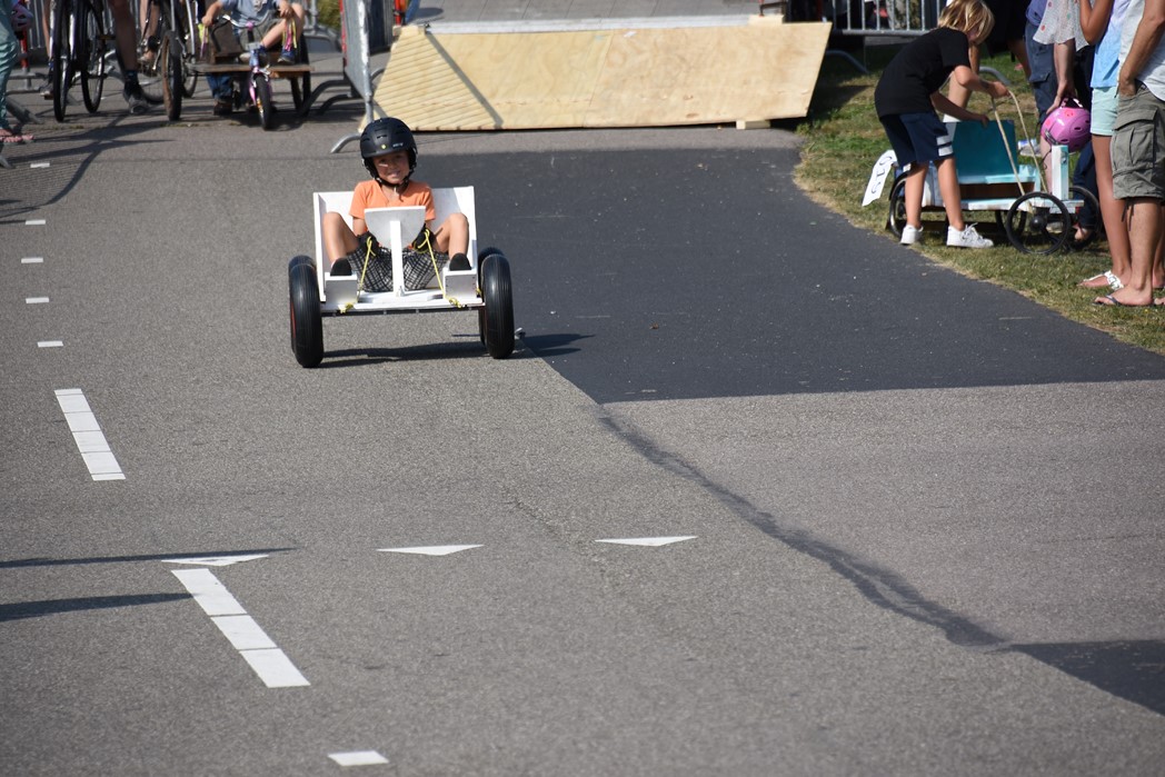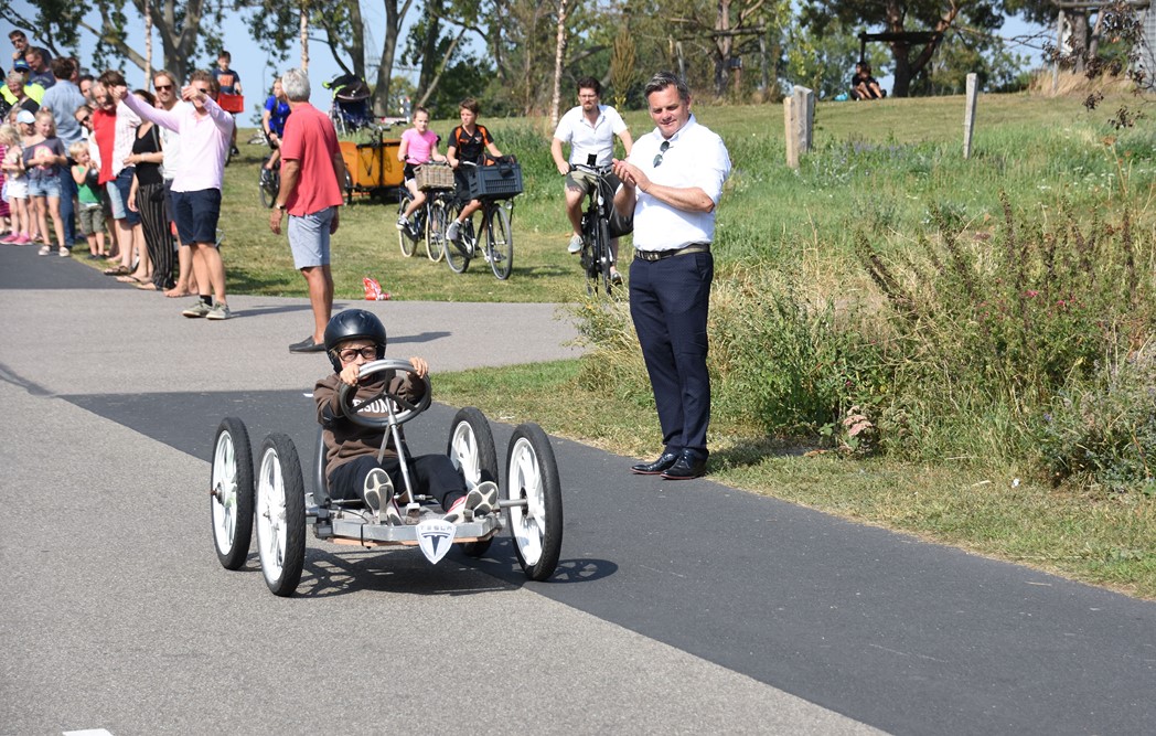 Een van de hoogtepunten van het wijkfeest is elk jaar de zeepkistenrace. Nadat de wethouder rond gekeken had in het parkje langs de Maresingel liep hij met de bestuurders van de zeepkisten naar de heuvel bij de Drakentuin om het startsein van de Zeepkisten Race 2019 te geven. De snelste tijd werd ook dit jaar weer neergezet door Clint Verlooij die zich met de supersnelle tijd van 17 seconden winnaar van 2019 mag noemen.