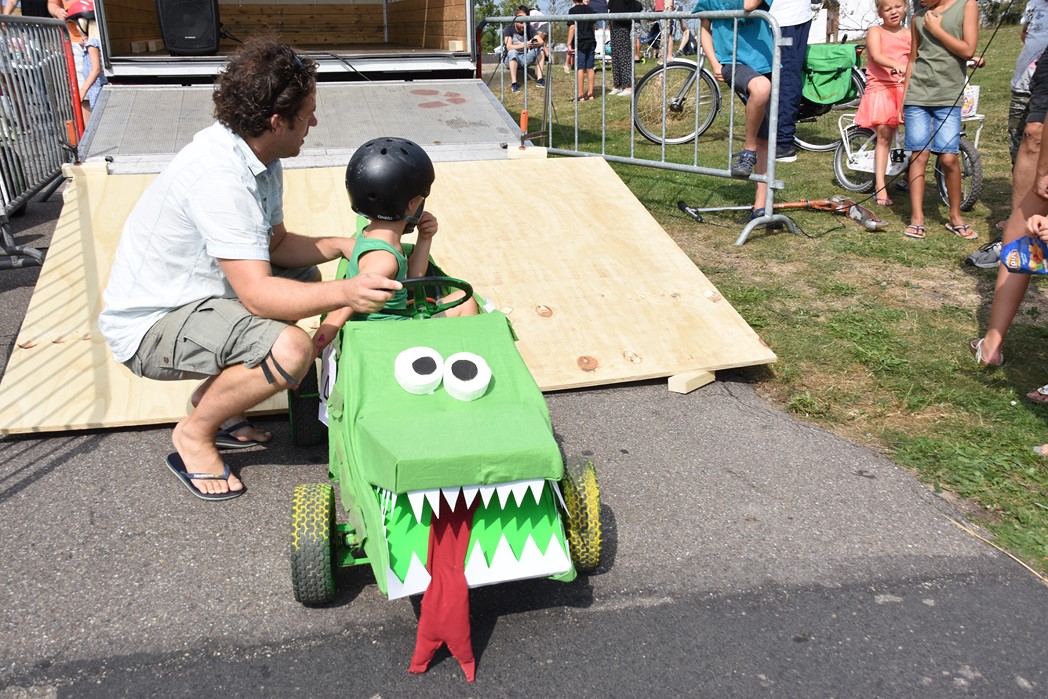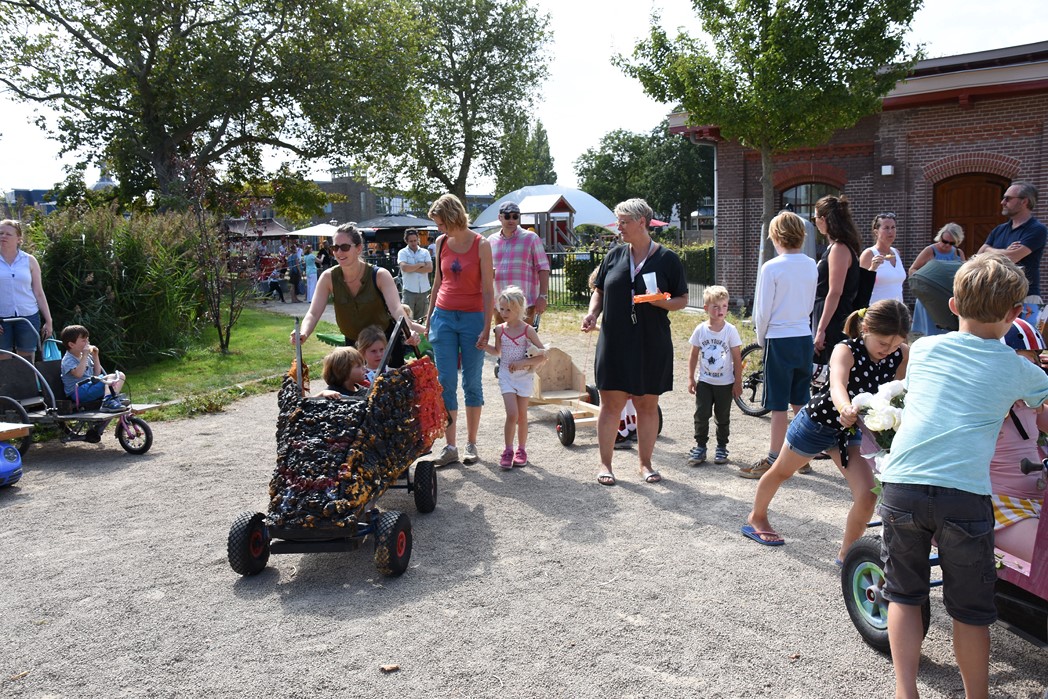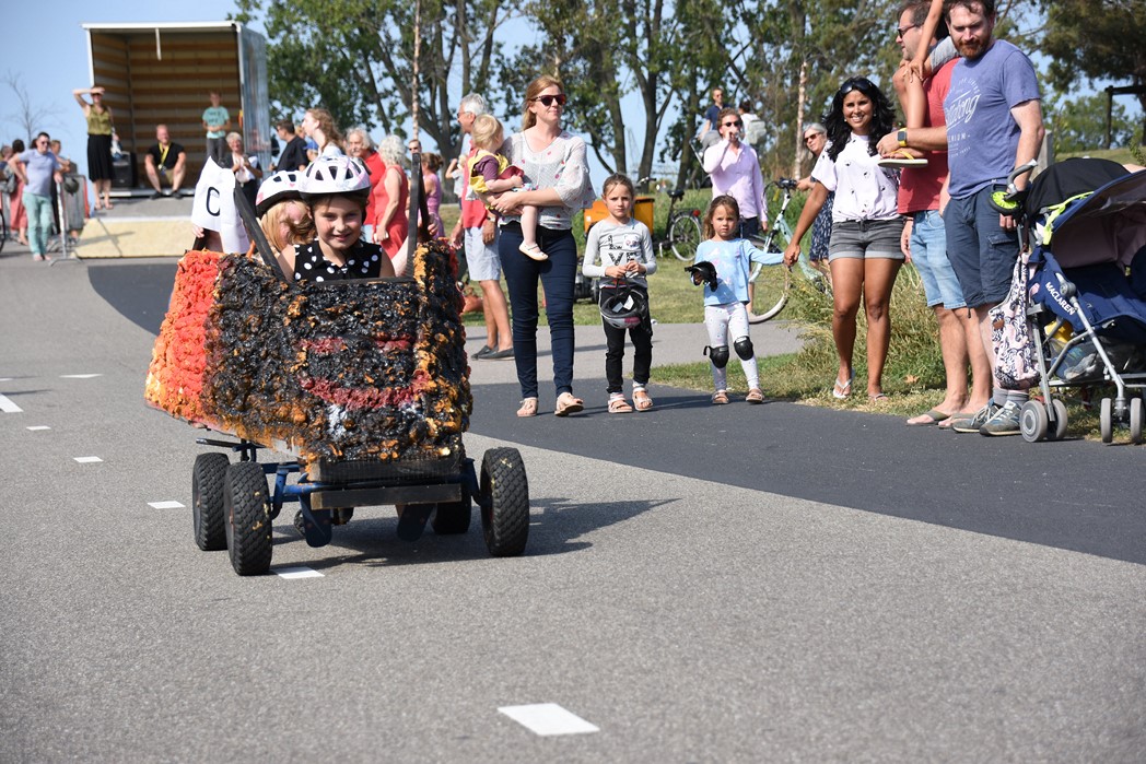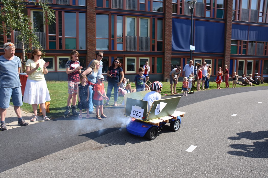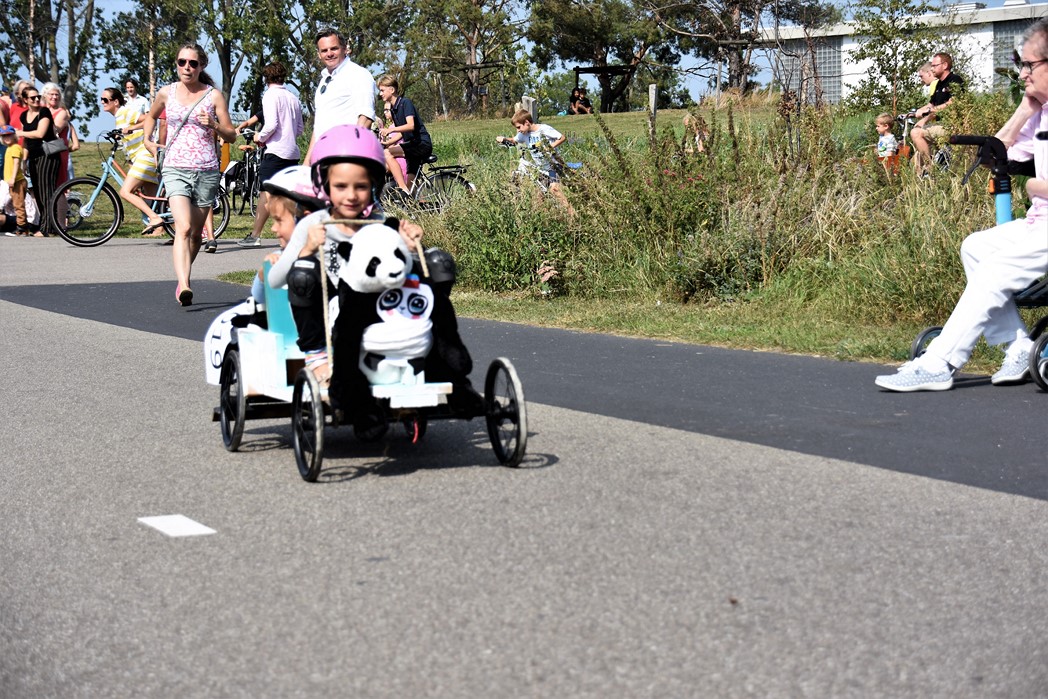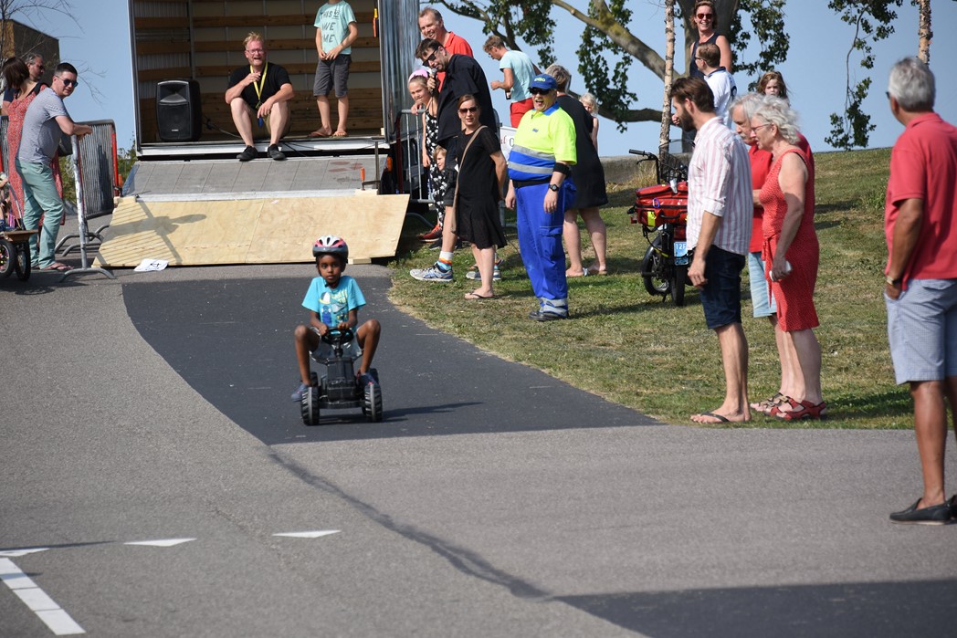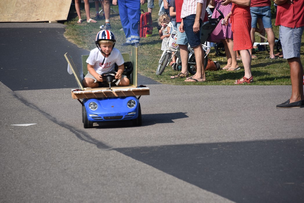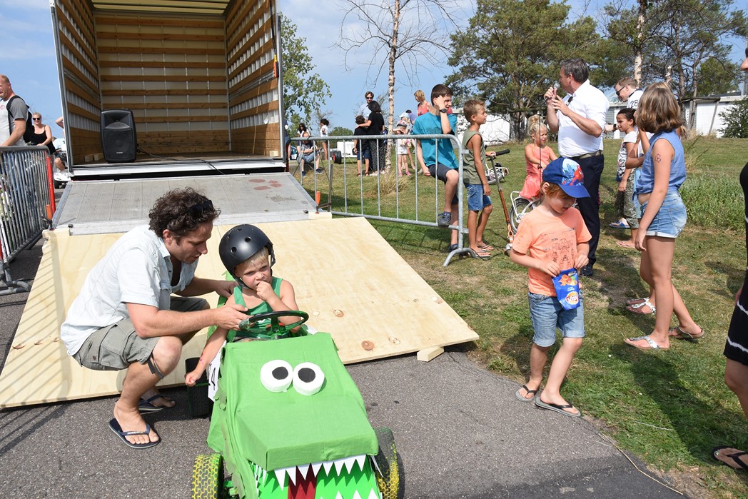 Een van de hoogtepunten van het wijkfeest is elk jaar de zeepkistenrace. Nadat de wethouder rond gekeken had in het parkje langs de Maresingel liep hij met de bestuurders van de zeepkisten naar de heuvel bij de Drakentuin om het startsein van de Zeepkisten Race 2019 te geven. De snelste tijd werd ook dit jaar weer neergezet door Clint Verlooij die zich met de supersnelle tijd van 17 seconden winnaar van 2019 mag noemen.