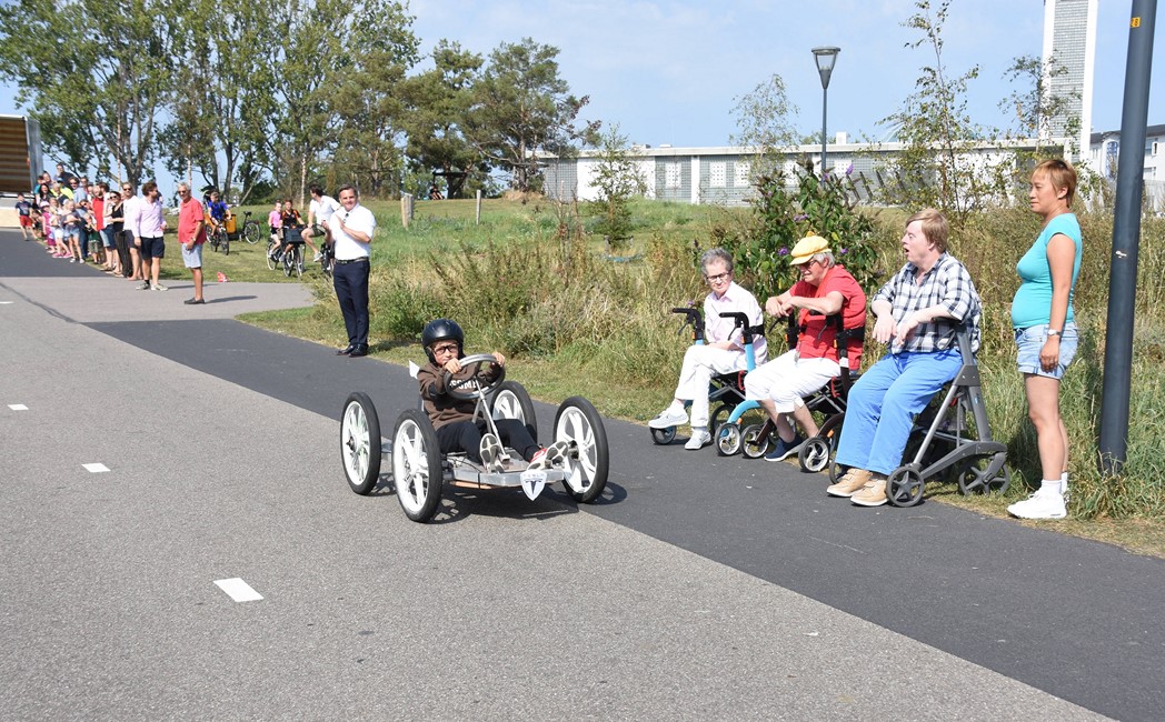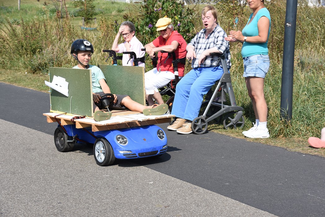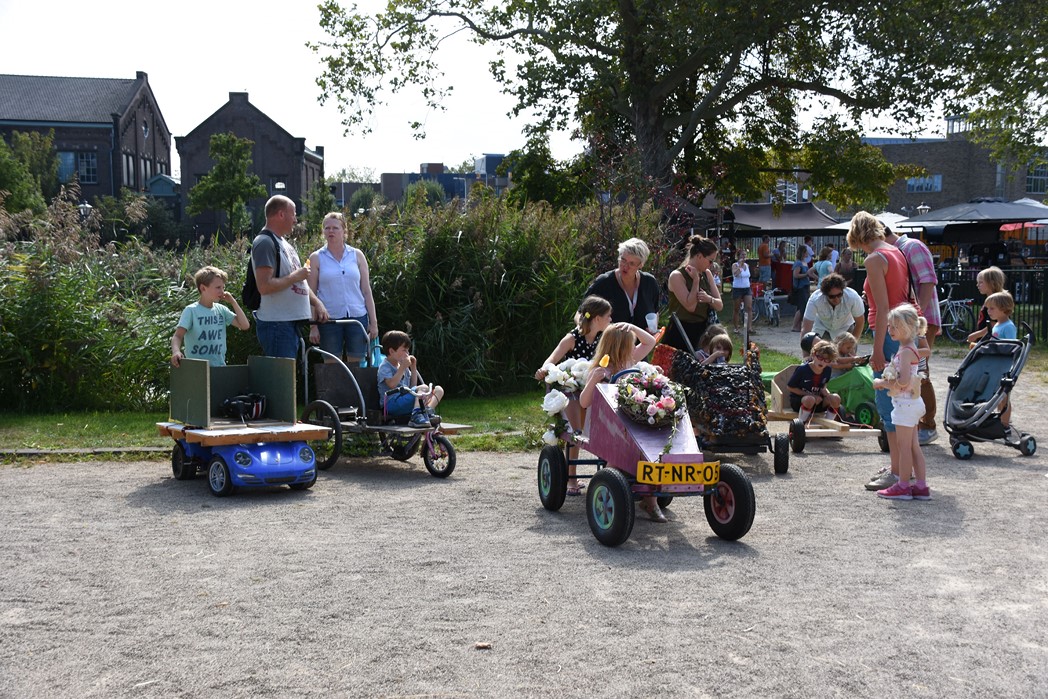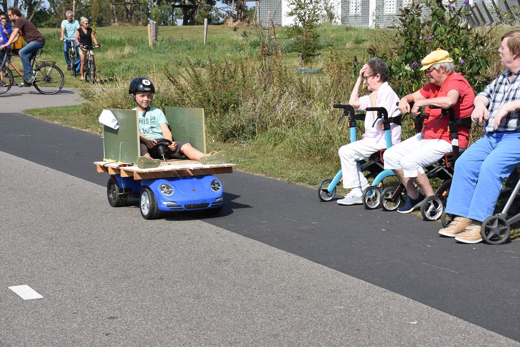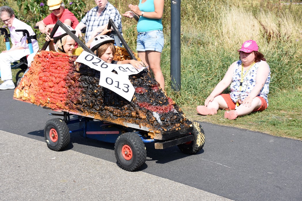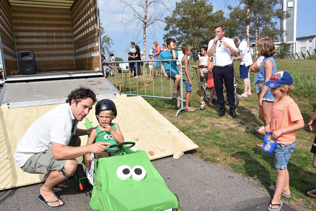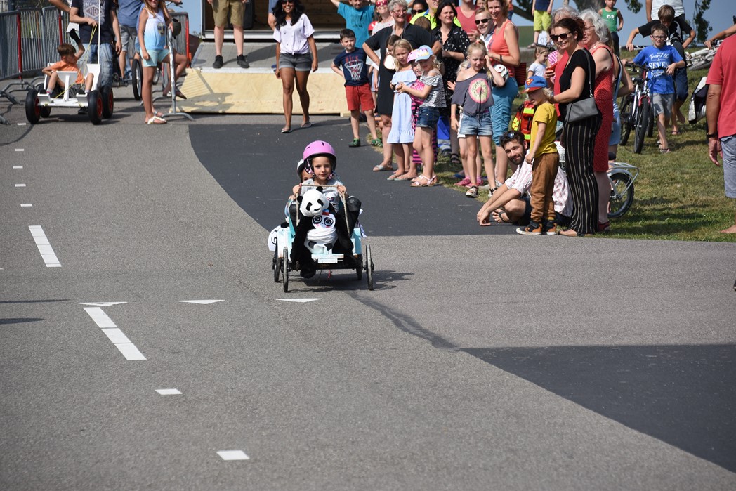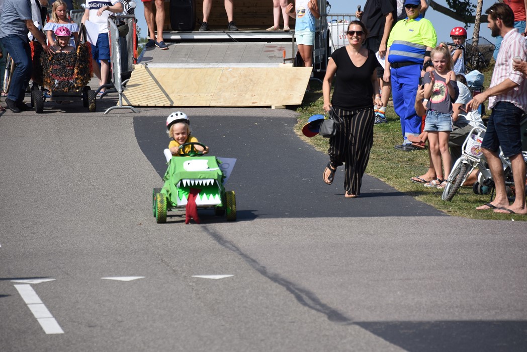 Een van de hoogtepunten van het wijkfeest is elk jaar de zeepkistenrace. Nadat de wethouder rond gekeken had in het parkje langs de Maresingel liep hij met de bestuurders van de zeepkisten naar de heuvel bij de Drakentuin om het startsein van de Zeepkisten Race 2019 te geven. De snelste tijd werd ook dit jaar weer neergezet door Clint Verlooij die zich met de supersnelle tijd van 17 seconden winnaar van 2019 mag noemen.