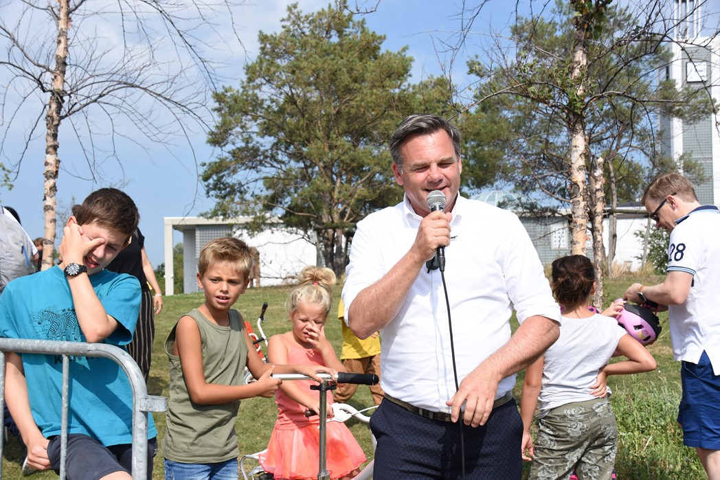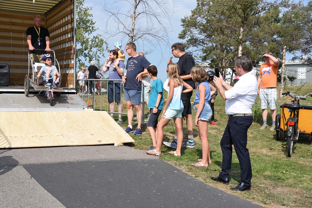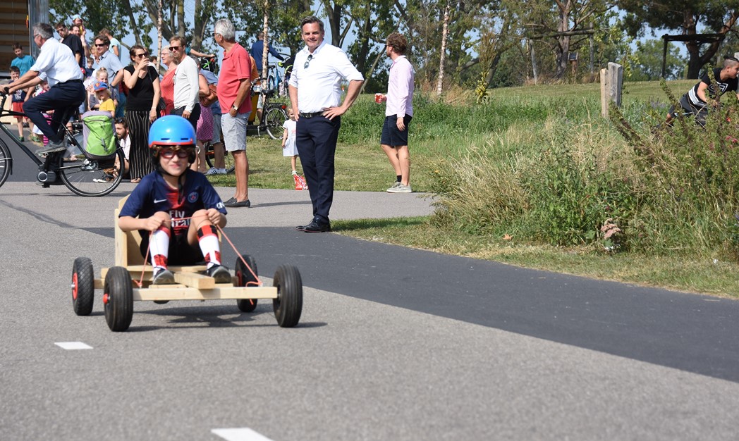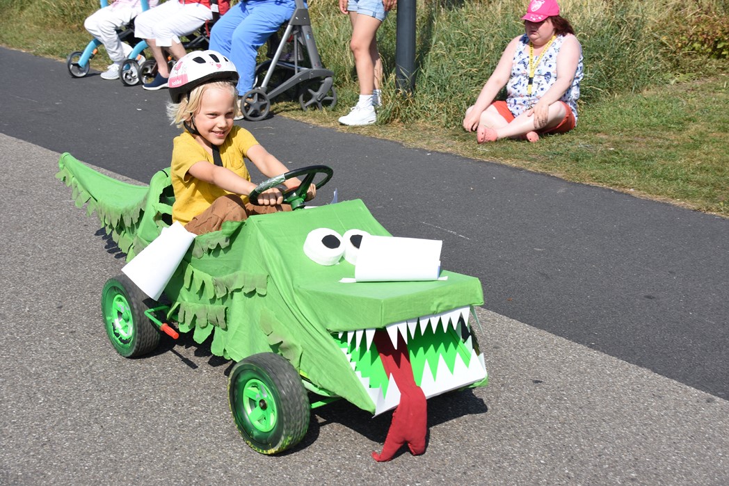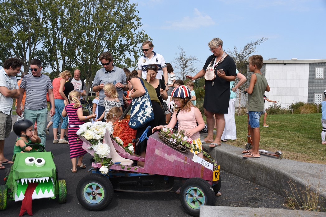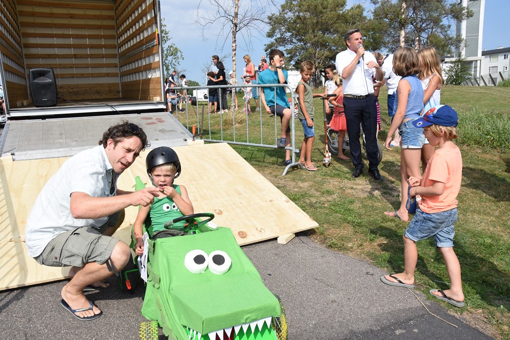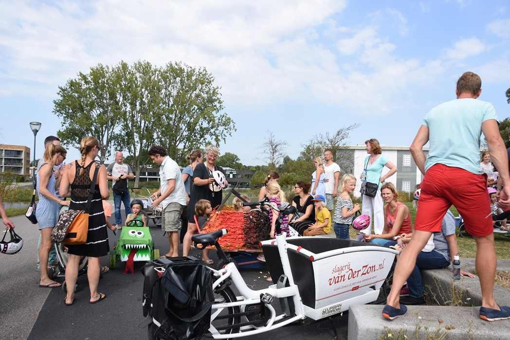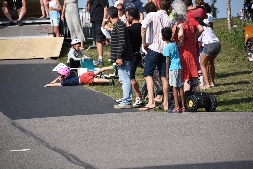Een van de hoogtepunten van het wijkfeest is elk jaar de zeepkistenrace. Nadat de wethouder rond gekeken had in het parkje langs de Maresingel liep hij met de bestuurders van de zeepkisten naar de heuvel bij de Drakentuin om het startsein van de Zeepkisten Race 2019 te geven. De snelste tijd werd ook dit jaar weer neergezet door Clint Verlooij die zich met de supersnelle tijd van 17 seconden winnaar van 2019 mag noemen.
