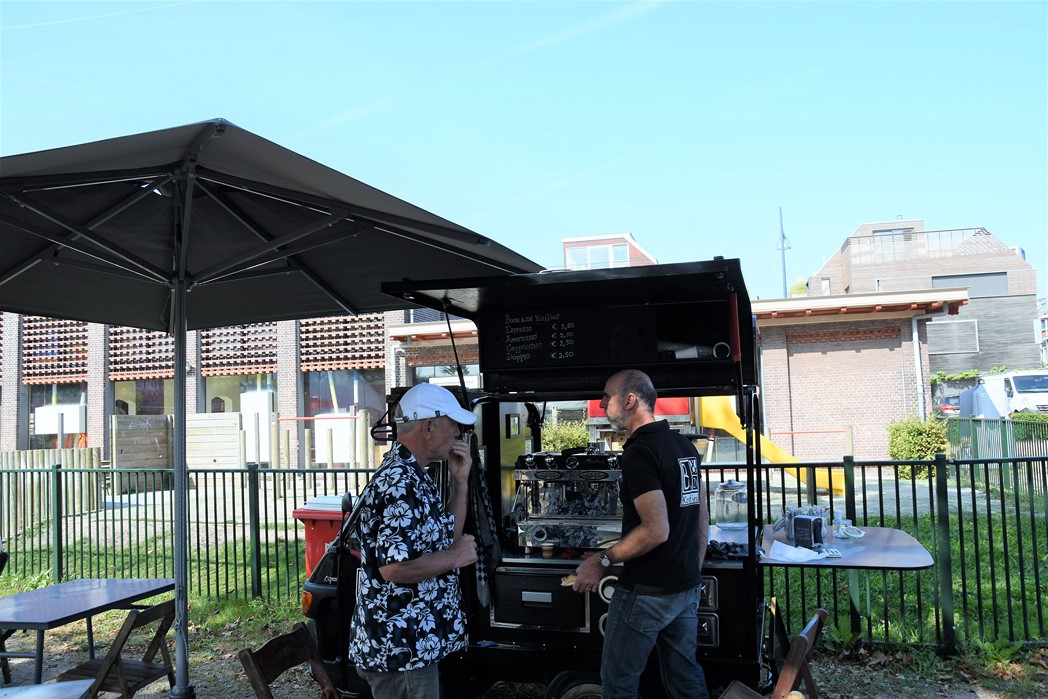 Organisator Danny van Leeuwen verteld wethouder Paul Dirkse hoe ‘ONS WIJK feest’ is ontstaan en door welke wijken georganiseerd wordt.