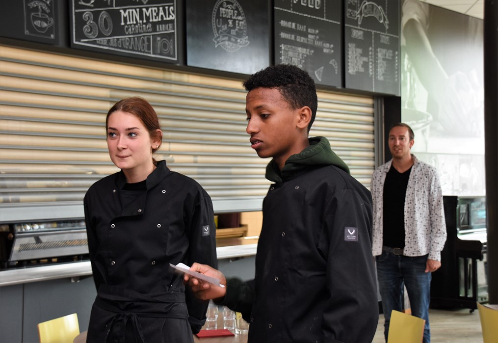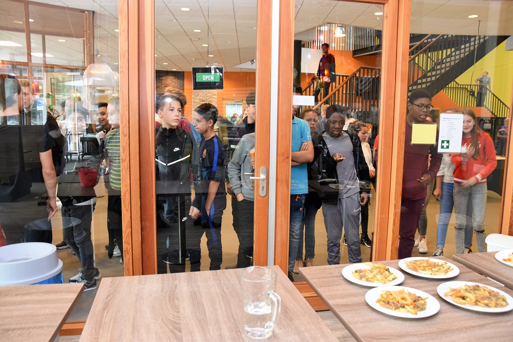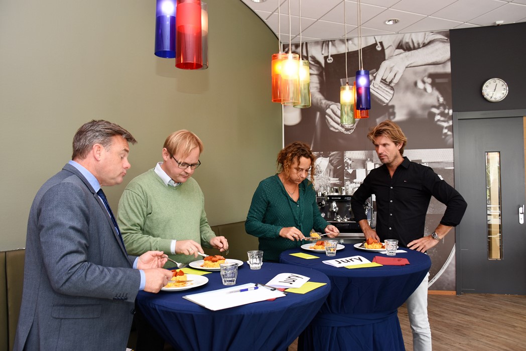 De ‘brigade’ van chefkok Rob Hulsbosch van restaurant Kitch& is vandaag winnaar geworden van de hutspot kookwedstrijd die werd gehouden op praktijkschool Het Waterland in de Boerhaavelaan in Leiden. De jury, bestaande uit onderwijswethouder Paul Dirkse, chefkok Norbert van Dartel, Leidsch Dagblad-journalist Laura Heerlien en voorzitter Lukas Kortenhorst van Sail Leiden, bleek behoudend en koos voor de meest traditionele hutspotbereiding. Dat was dus die van Kitch&. “We hebben een klassieke hutspot gemaakt met een beetje mosterd en gestoofde kalfssukade en een hutspotbitterbal,” beschrijft Hulsbosch zijn recept. Bij het koken kreeg hij hulp van leerlingen Quinty en Jemel.