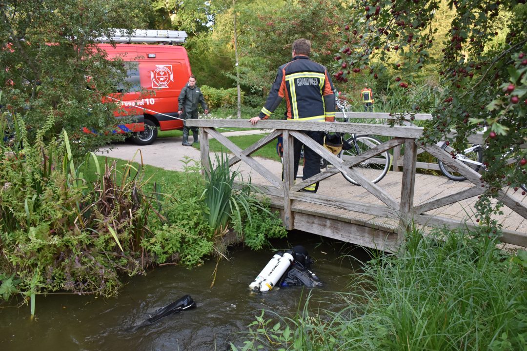 Duikers van de brandweer hebben vanavond bij het Burgemeester Berkhoutpark in Voorschoten de vijver doorzocht, nadat langs het water een kinderfietsje was aangetroffen. De zoekactie trok nogal wat bekijks en enkele omstanders wisten uiteindelijk te melden dat de fiets al enkele weken in het parkje rondzwerft.