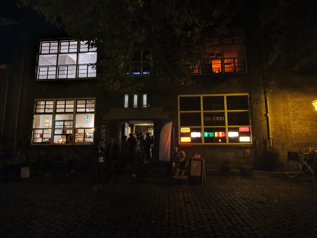 21.38 uur: Lichtkunstwerk Punt van Jos Agasi in Old School. #NvO19