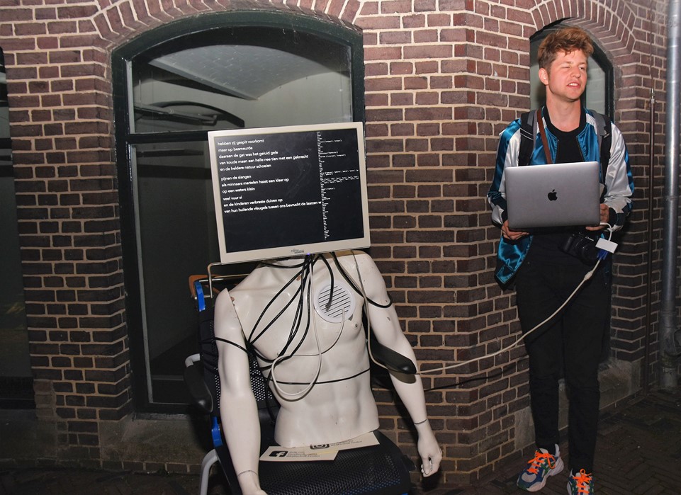 Op het eerste gezicht luguber was de installatie Famous Deaths van Polymorf. Uit de omschrijving maakte je het niet op; het reconstrueren van de ervaring die iemand – een beroemdheid – heeft in de laatste minuten van zijn of haar leven “geur als informatiedrager. Het is een datasysteem. Kun je daarmee ontwerpen? Dat was de vraag waarmee we begonnen”. Dat eindigt vanavond dus in een tweetal koelcel-lades voor stoffelijke overschotten, waarin de bezoeker vier minuten plaatsneemt. In die vier minuten ervaar je door middel van geluid en geur – géén beeld, want het is stikdonker – die laatste minuten; van bij voorbeeld Khadaffi, van Vincent van Gogh, of, hier in Leiden, van Lady Di of John F. Kennedy.
