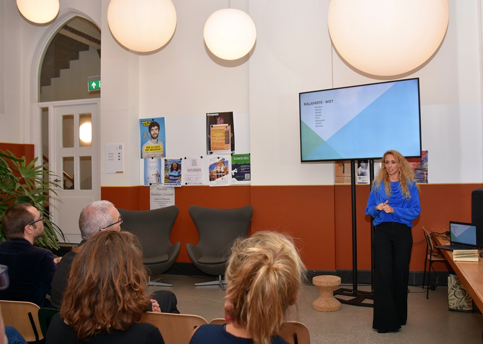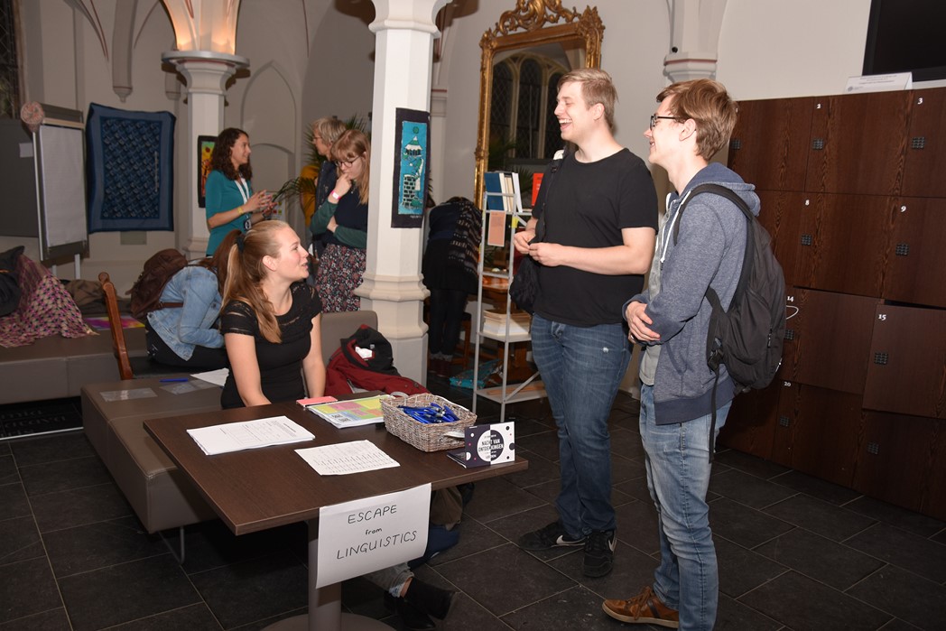 Het nadeel van zulk mooi weer is dat binnen-zijn zonde lijkt. Toch viel er ook daar veel te beleven. Talloze ‘kleine’ standjes waar wetenschappers wetenswaardigheden presenteerden en/of je aan het denken zetten. De quiz in de Sterrenwacht over aardse en astronomische fenomenen; ieder jaar toch weer lastiger dan je denkt. Het herkennen van stemmen blijkt verdraaid lastig, blijkt uit de presentatie van Meike de Boer, promovenda Forensische Fonetiek. Een bijzondere fototentoonstelling konden we zo een-twee-drie niet terug vinden in het programma. In de rechtervleugel van het Academiegebouw was in een schemerige zaal een collectie foto’s opgehangen die je zelf moest aanlichten met een zaklamp; foto’s van dood in diverse gedaanten, zo leek het. Op een vreemde manier fascinerend.