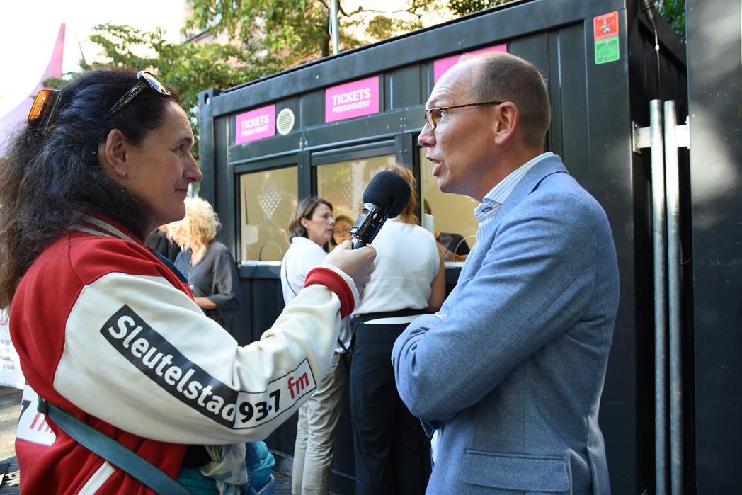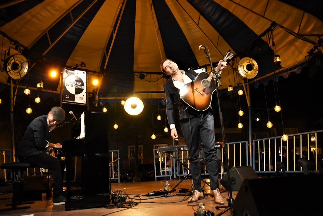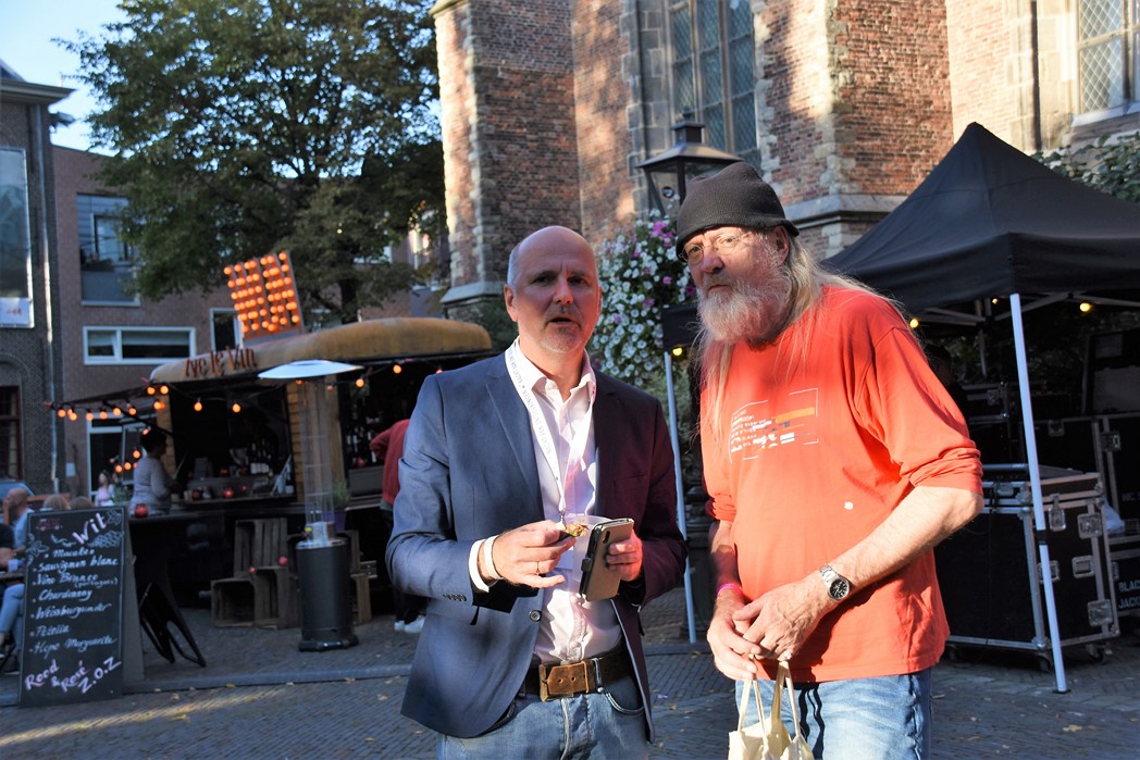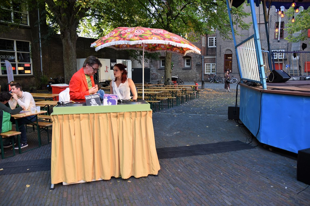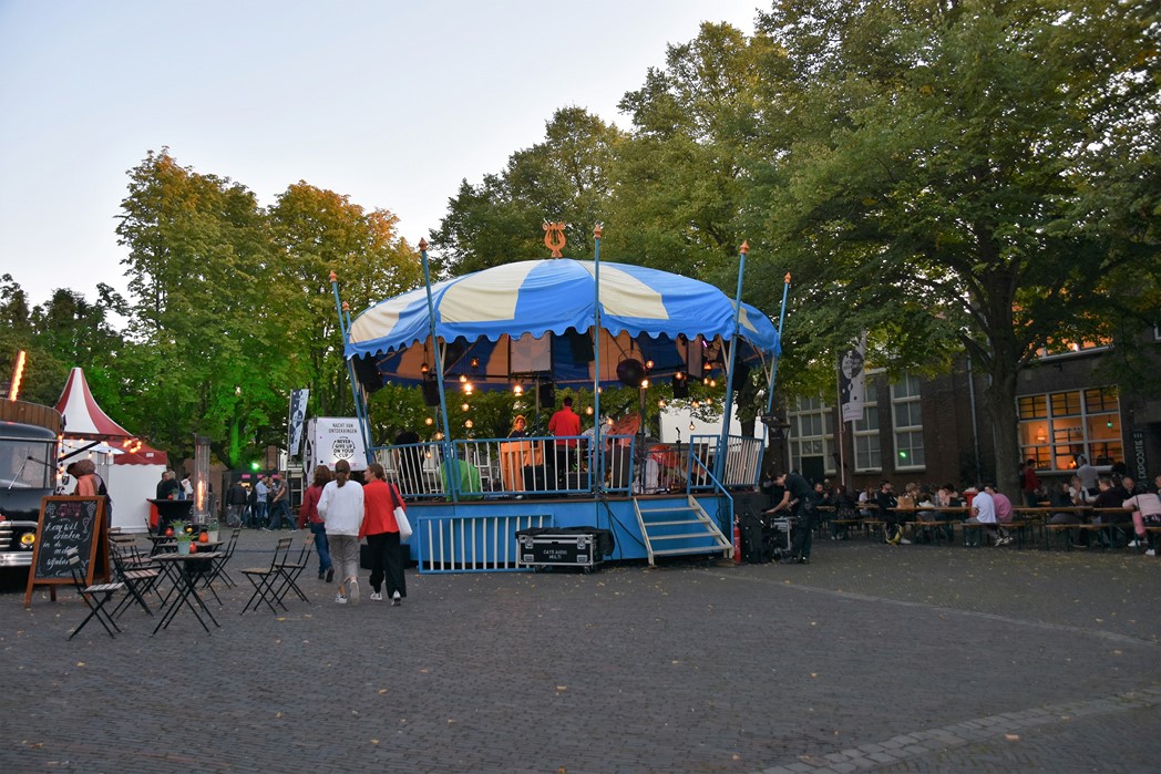 Het Pieterskerkplein is minder druk als de voorgaande jaren. De sfeer beïnvloedt het niet. Zeker de open, ronde muziekkoepel(tent) droeg daar welzeker aan bij. Muzikanten als Lucky Fonz III, Paul de Munnik en Mike Boddé komen op dergelijke podia toch veel huiselijker, veel benaderbaarder over dan op een hoog, klassiek gesloten podium. Zeker Lucky Fonz III ontpopte zich, voor mij, als een artiest die het zeker ook moet hebben van zijn eigen aanwezigheid. Zonder dat lijken zijn liedteksten op het banale af.